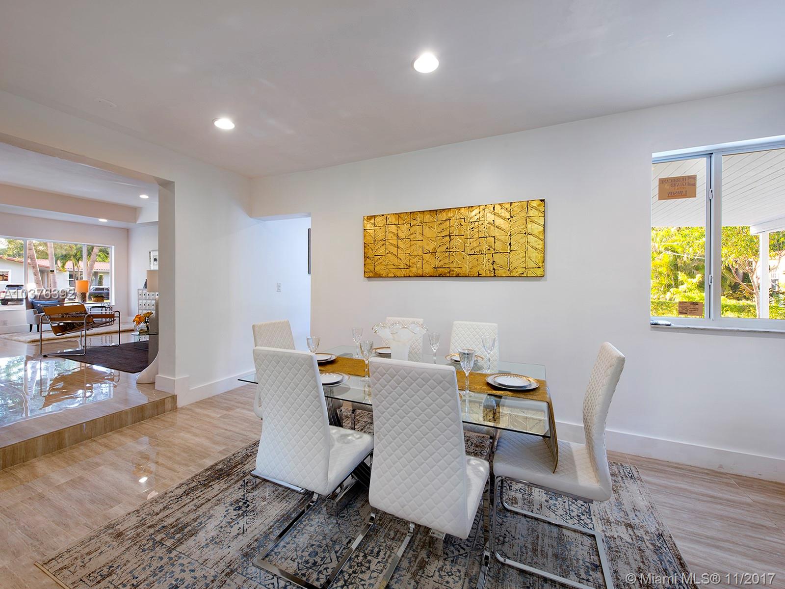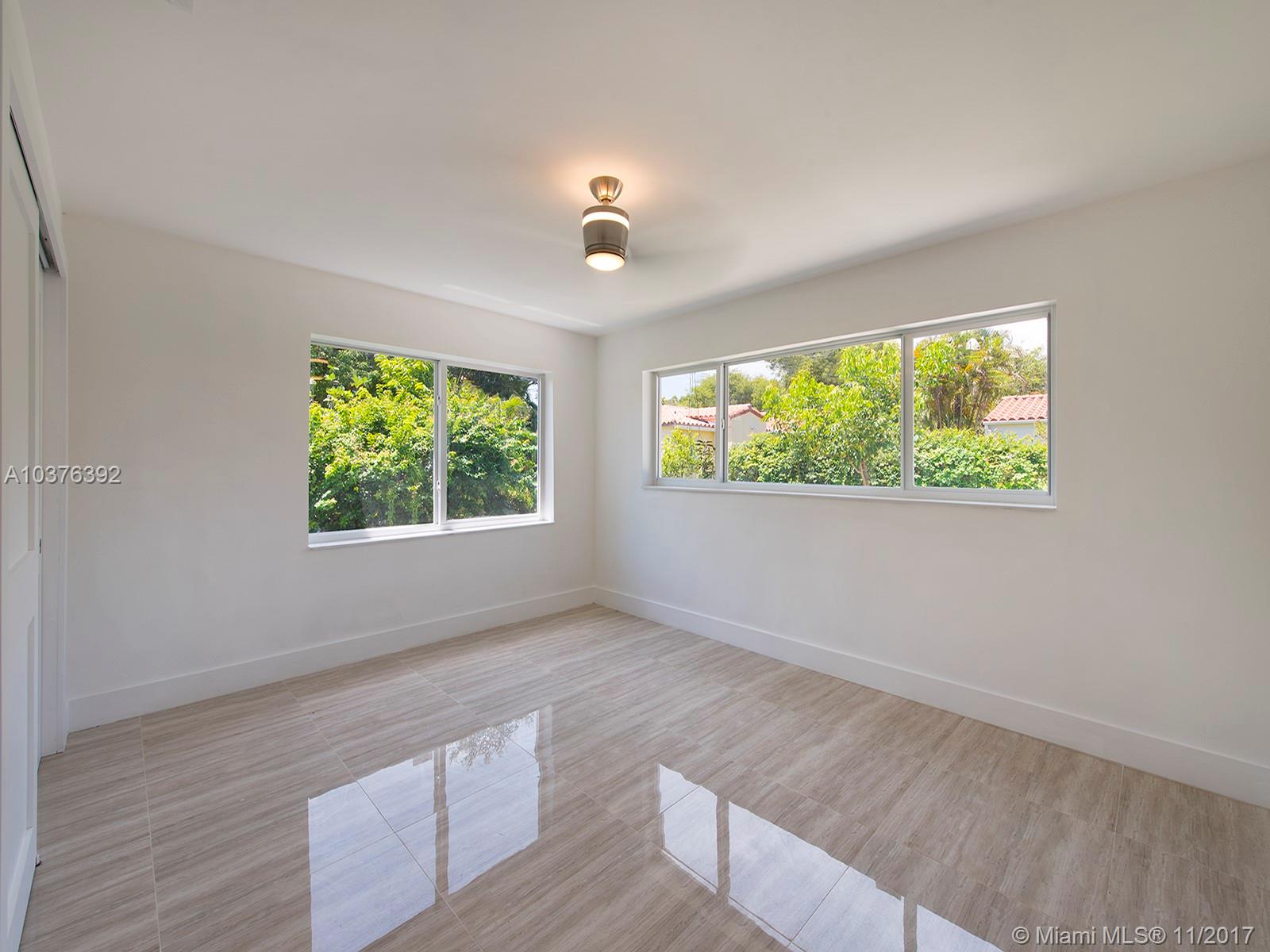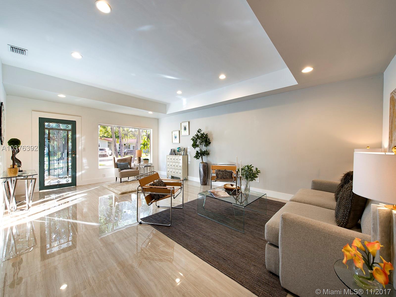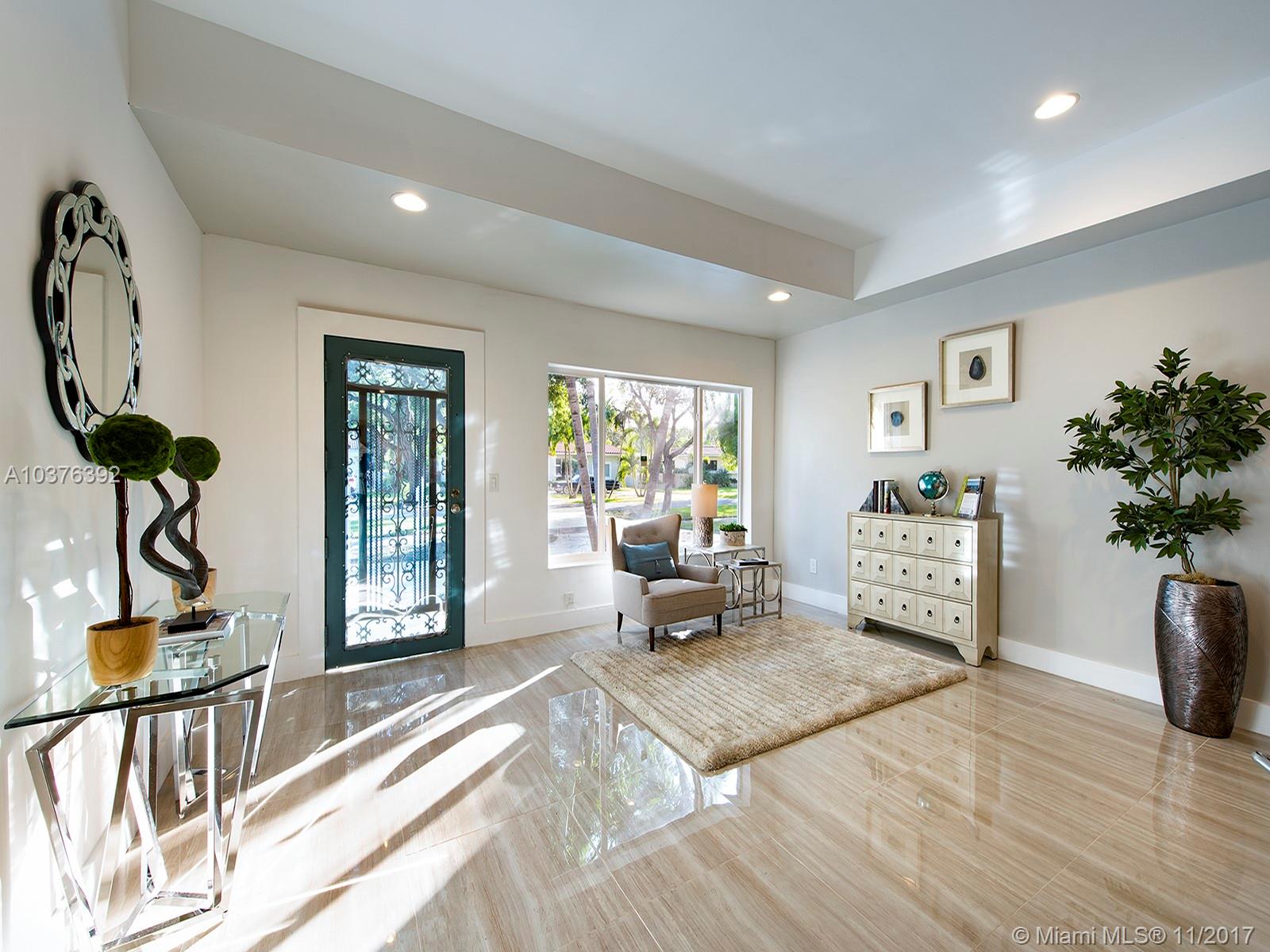 Wow! Completely re-modeled 4bed/3.5 bath 1940’s Jewel with Modern Amenities! Vaulted Ceilings, Open Spaces and Brand New porcelain tile floors throughout! Large Open Eat-In Kitchen with Breakfast Bar, New SS Appliances & brand New Cabinets; perfect for entertaining! Large Master suite includes Double sinks and large closets! Large Family Room with double French doors overlooks the newly tiled patio and private backyard. All new Hurricane Impact Windows, Plumbing, Electric system and panel and A/C! A True must See, this home won’t last long!
