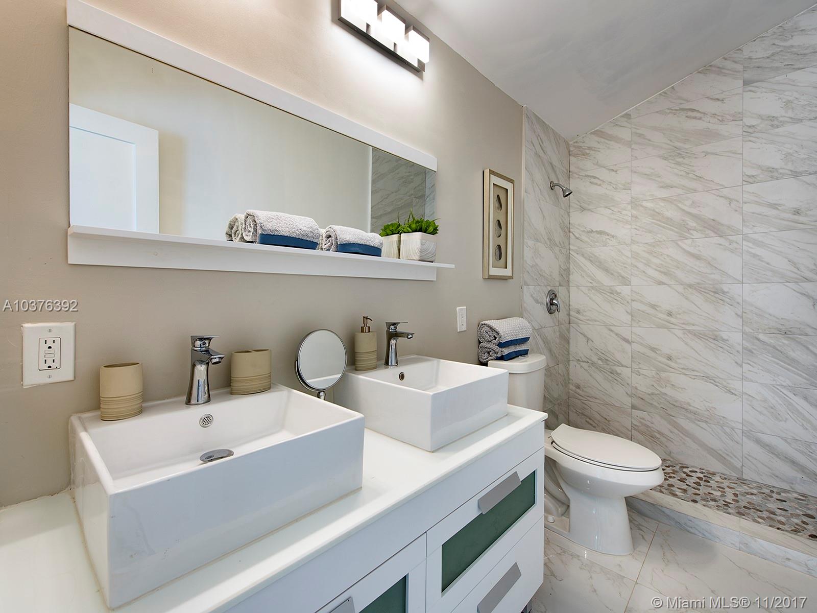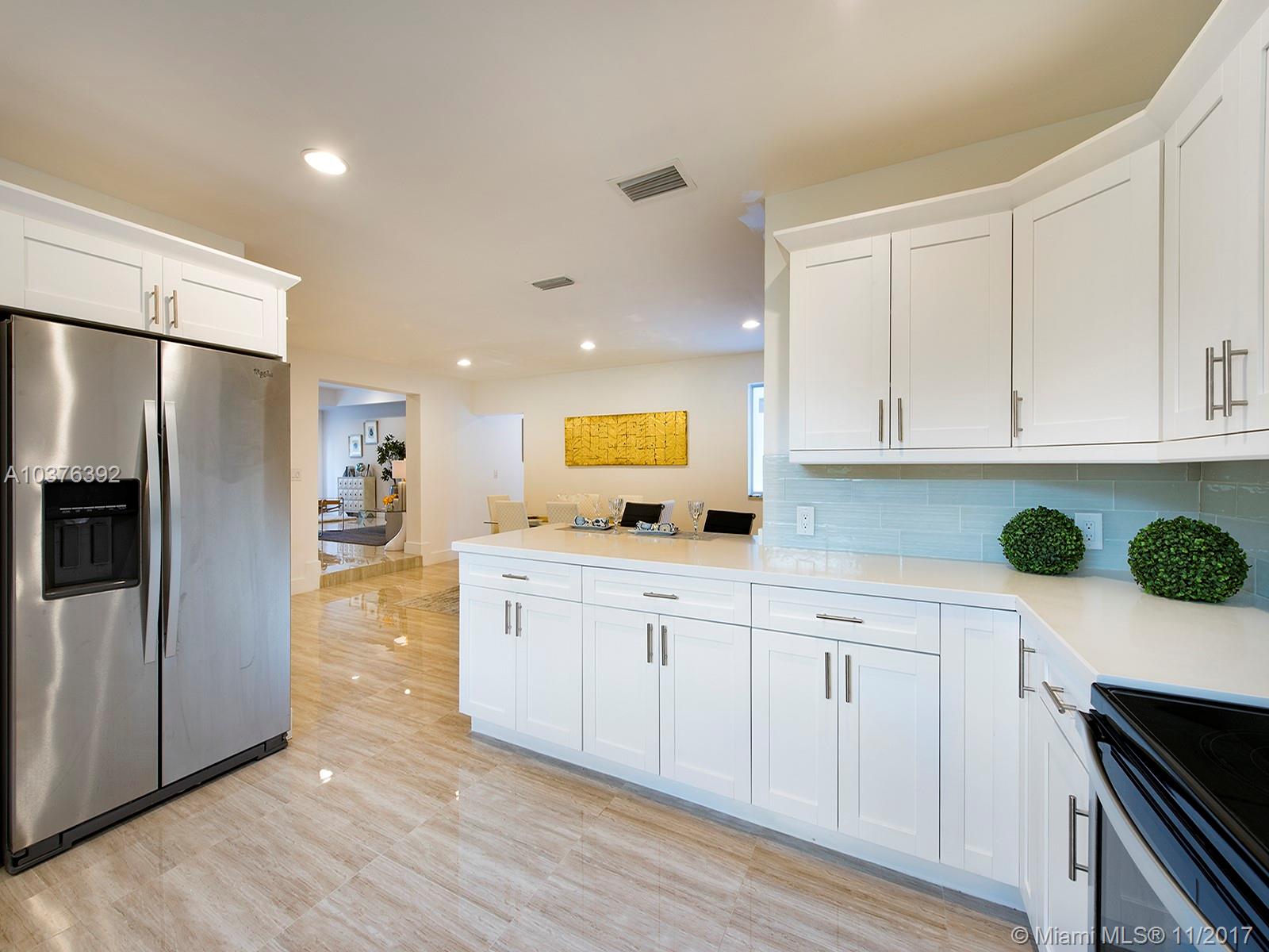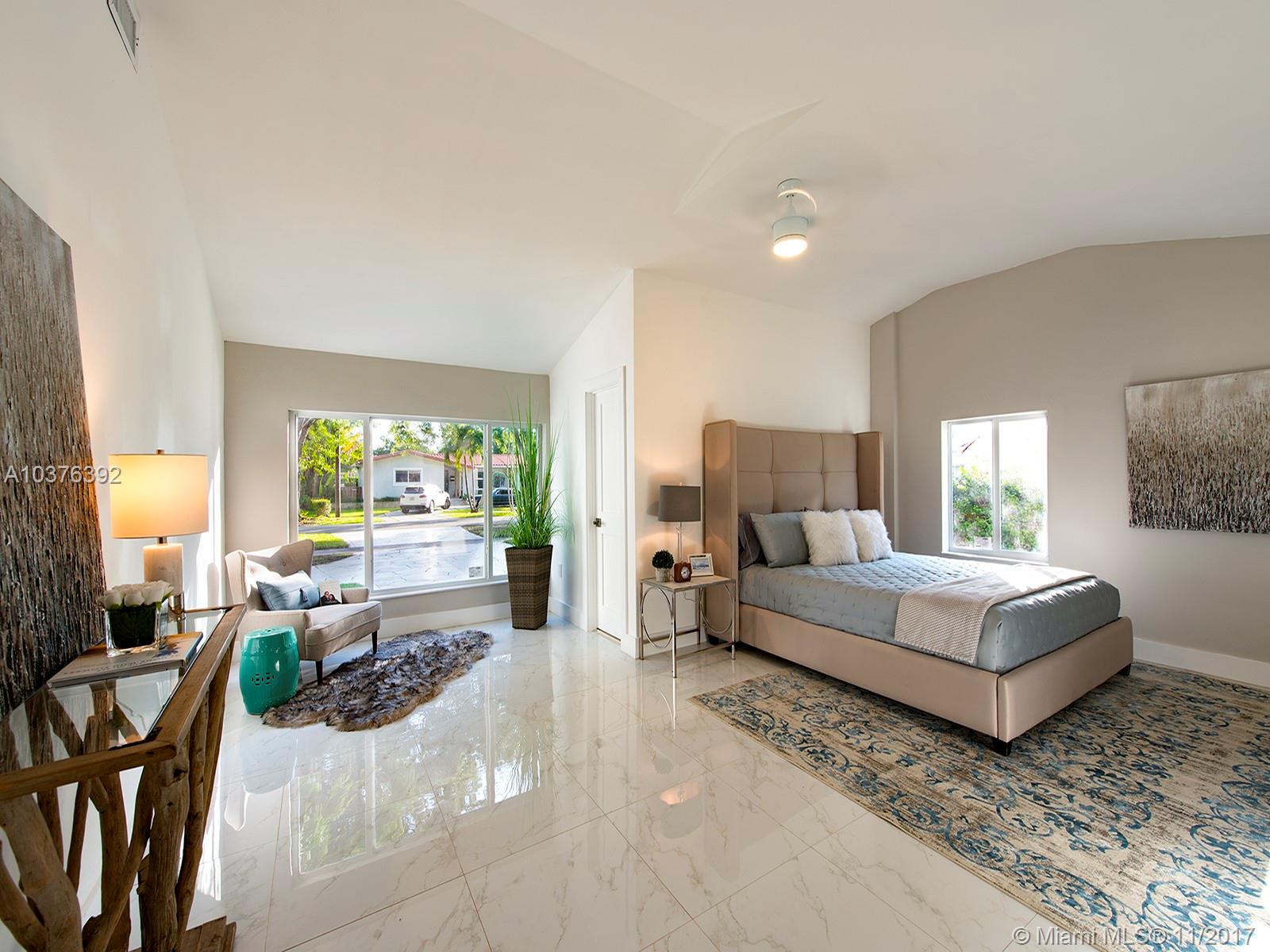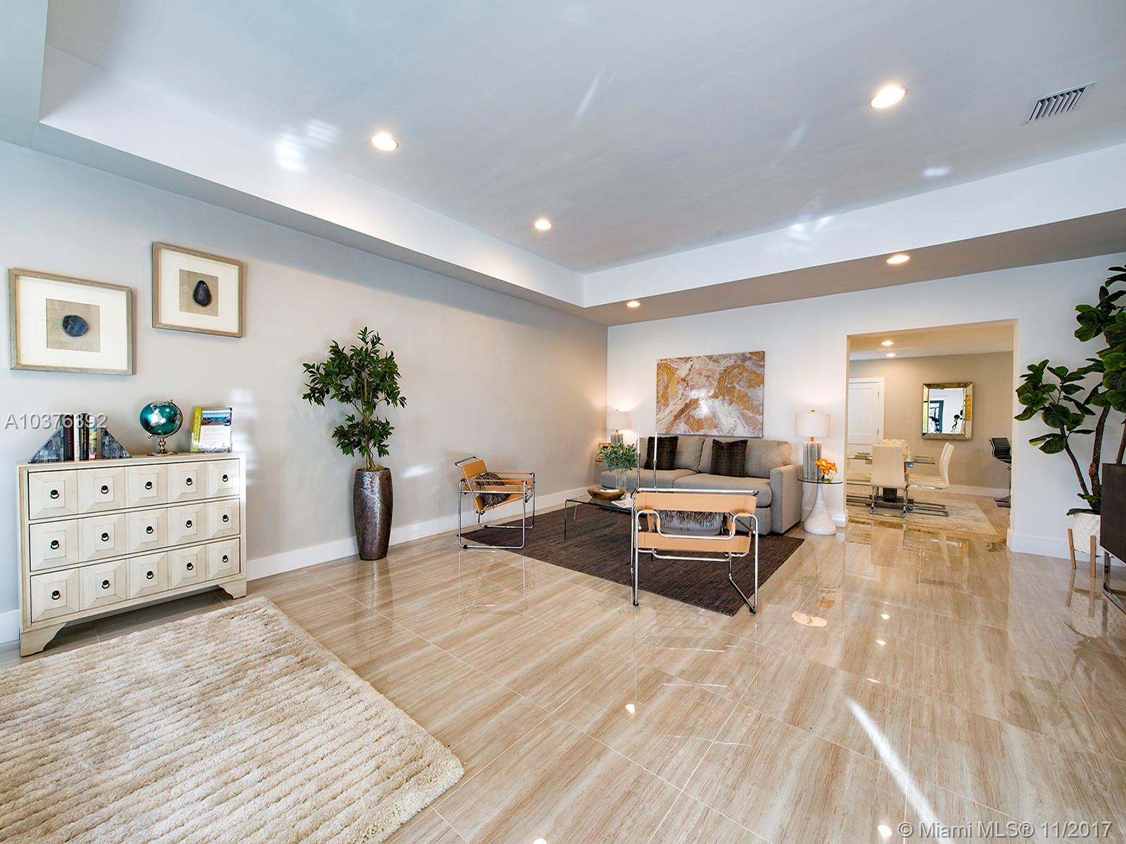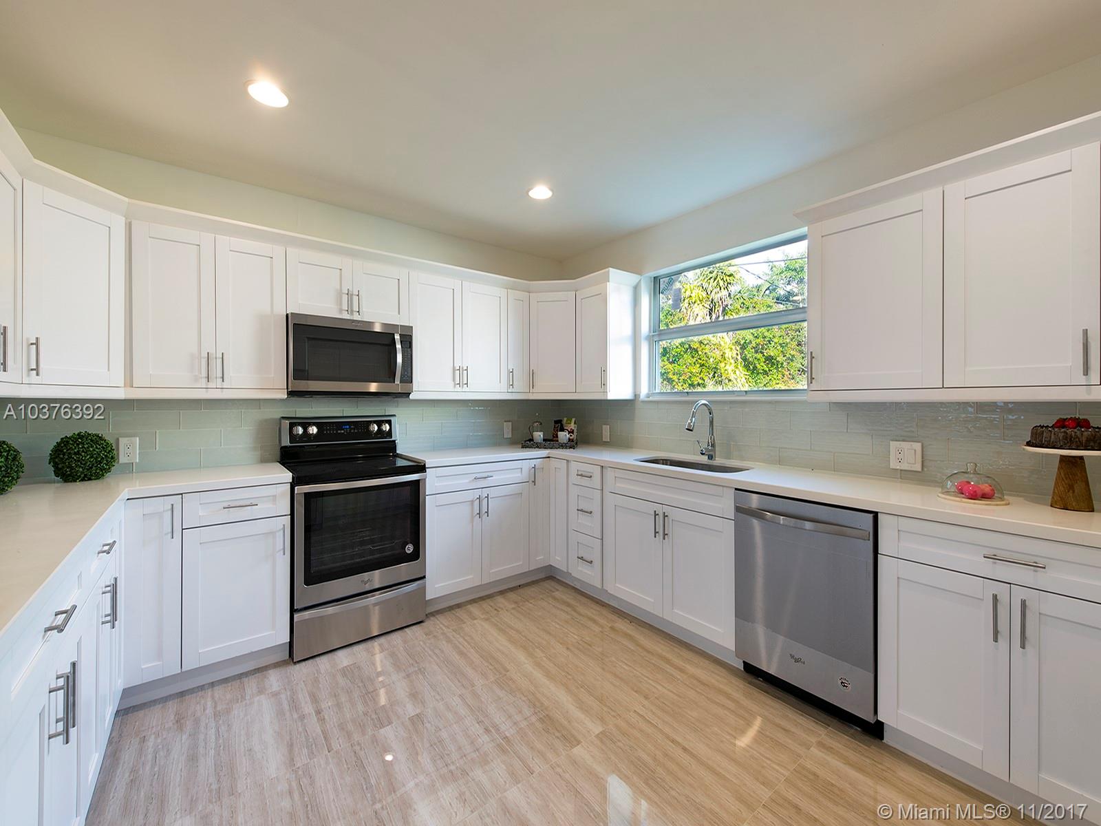 Wow! Completely re-modeled 4bed/3.5 bath 1940’s Jewel with Modern Amenities! Vaulted Ceilings, Open Spaces and Brand New porcelain tile floors throughout! Large Open Eat-In Kitchen with Breakfast Bar, New SS Appliances & brand New Cabinets; perfect for entertaining! Large Master suite includes Double sinks and large closets! Large Family Room with double French doors overlooks the newly tiled patio and private backyard. All new Hurricane Impact Windows, Plumbing, Electric system and panel and A/C! A True must See, this home won’t last long!