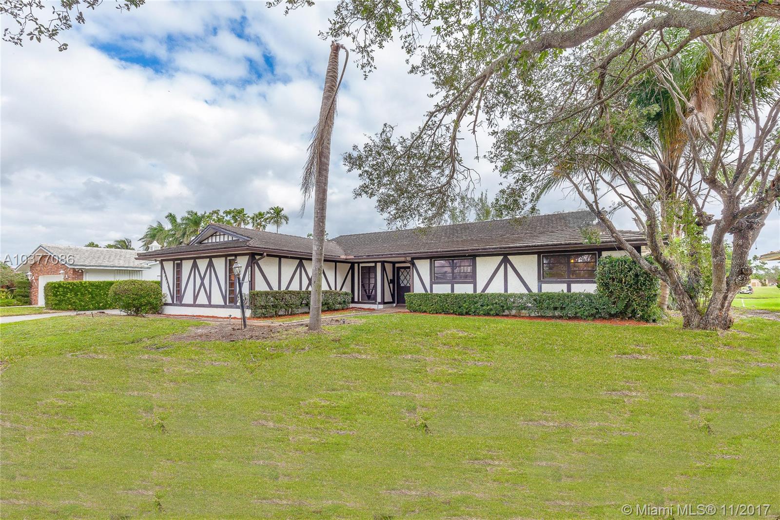 Elegant Tudor style home nestled in the prestigious Miami Country Club community with amazing golf course views. Stepping inside reveals a comfortable open design space with wood accents, exposed beams that emphasize the room heights with beautiful natural lighting. This floor plan design offers a gourmet kitchen ideal for family entertainment. Centrally located in a 24 hr gated community just north of Miami Lakes and minutes from south broward county. With a little TLC, this home will be an oasis to any gulf enthusiast or any family dream home.