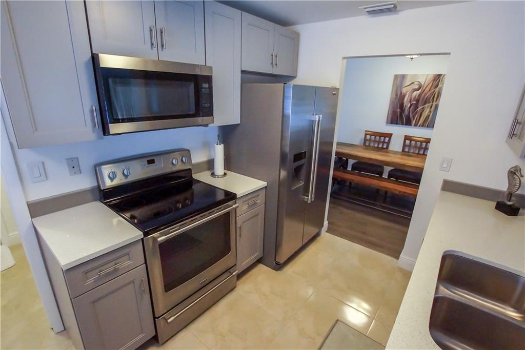A winning decision! Fabulous remodeled home. New kitchen w/wood soft close cabinets/drawers. New stainless steel appliances. Easy maint. Quartz counters! All new floors thru-out w/ porcelain tile in kitchen & baths. Updated baths. Smooth ceilings. 5.5" baseboard thru-out. Indoor laundry. Roof 2015! Newer a/c and WH. NO LAND LEASE. Huge 2-car wide stamped concrete driveway. Quiet street. Enjoy Leisureville's pools, clubhouse, community bus, free 9-hole golf course. Florida living at its finest. 55+ comm.