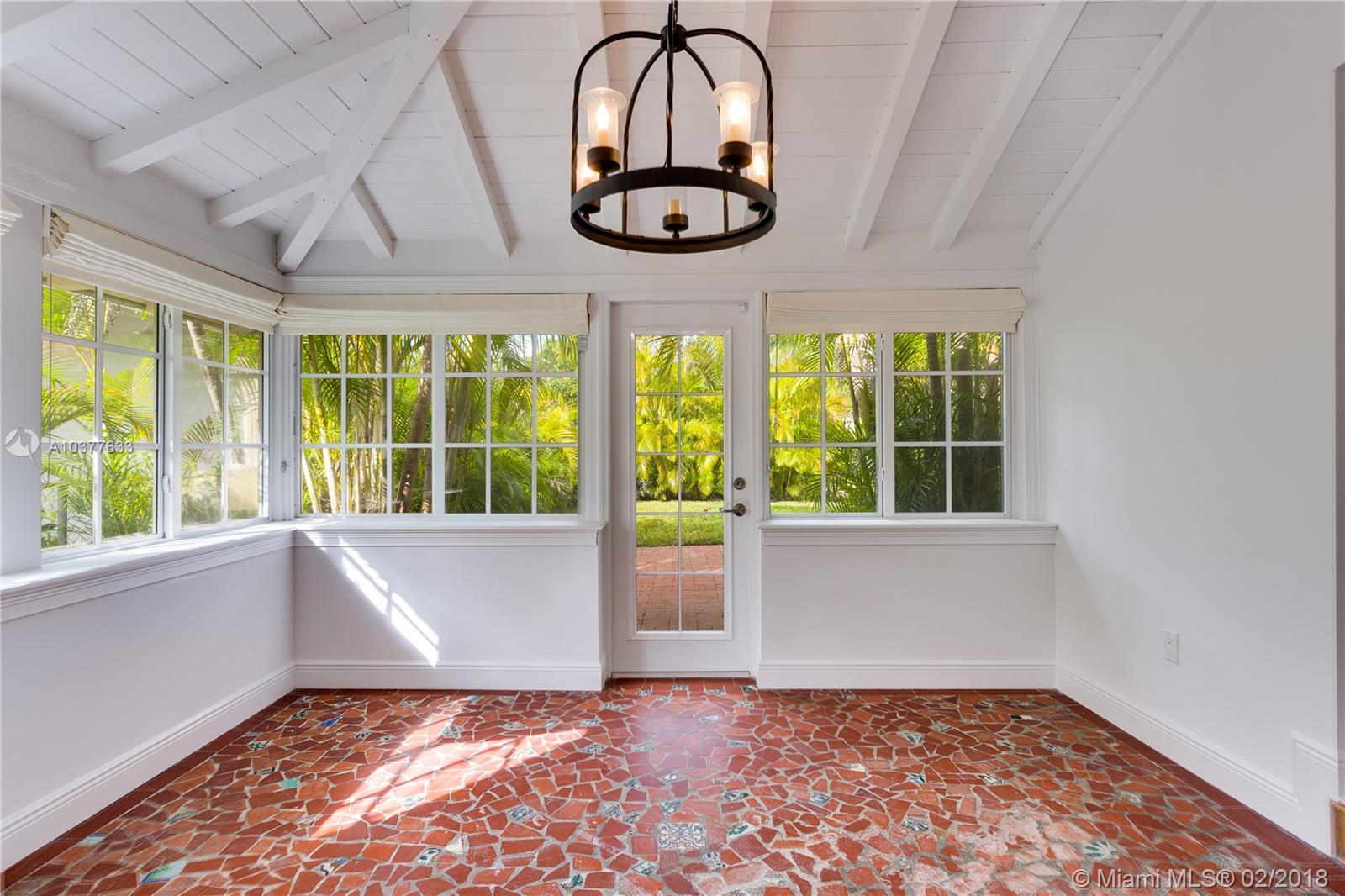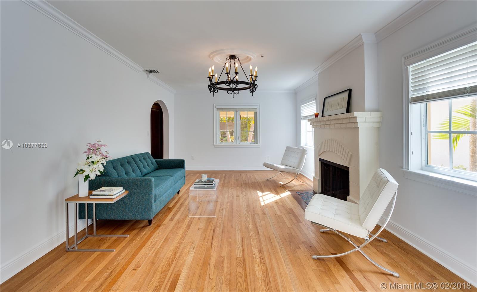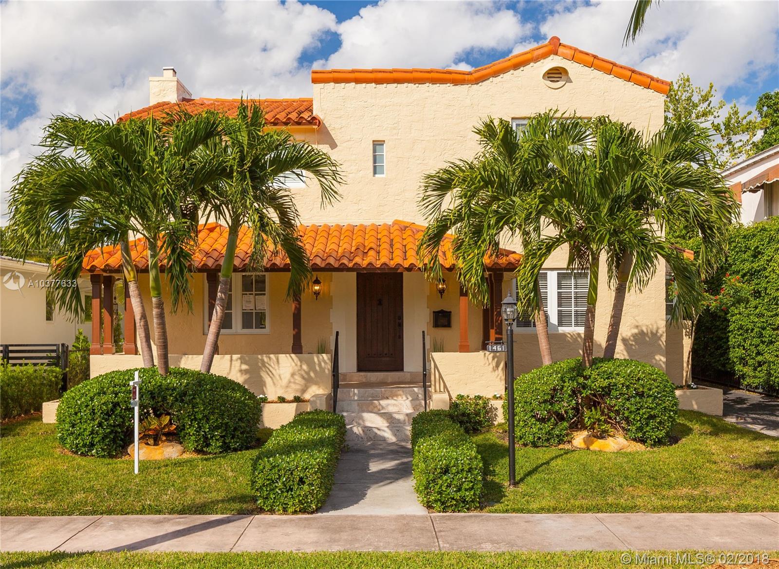 Turn-key, beautifully updated classic 1920's 2-story "Old Spanish" style 4/3.5 on quiet, low traffic Coral Gables street within walking distance to UM campus and in the David Fairchild School District. This is an unusually spacious vintage home with big rooms, big closets and high ceilings. New kitchen, new baths, impact doors and windows. 3/2.5 main house with a 1/1 guest house and a 1 car garage. Center hall stairwell foyer, large formal dining room, 23' long living room with fireplace. 17'X13' master bedroom with 10'X6' master closet