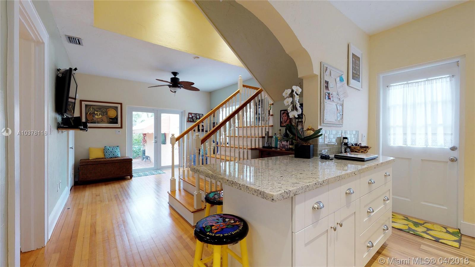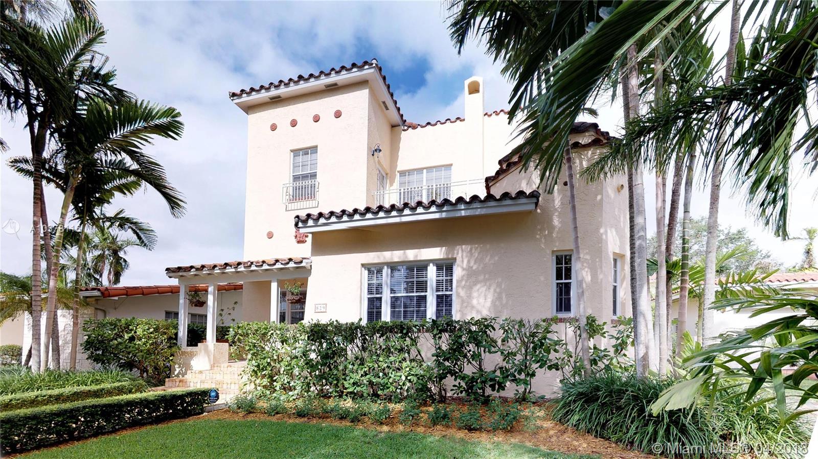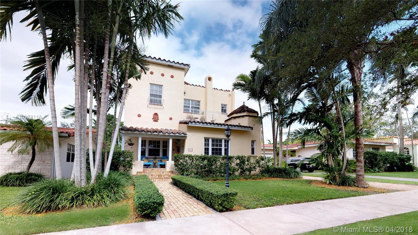 Beautiful old Spanish two story home on quiet street in the heart of Coral Gables. Home features 4 bedrooms, 3 baths, charming fireplace, wood floor, updated kitchen w/ granite, SS appliances, and contemporary finishes. Master bedroom has a private balcony overlooking a tree-lined street. Lovely backyard has built-in grill, perfect for entertaining family and friends & room for a pool. Located within A+ school district, centrally located near Gables restaurants, shopping & entertainment.