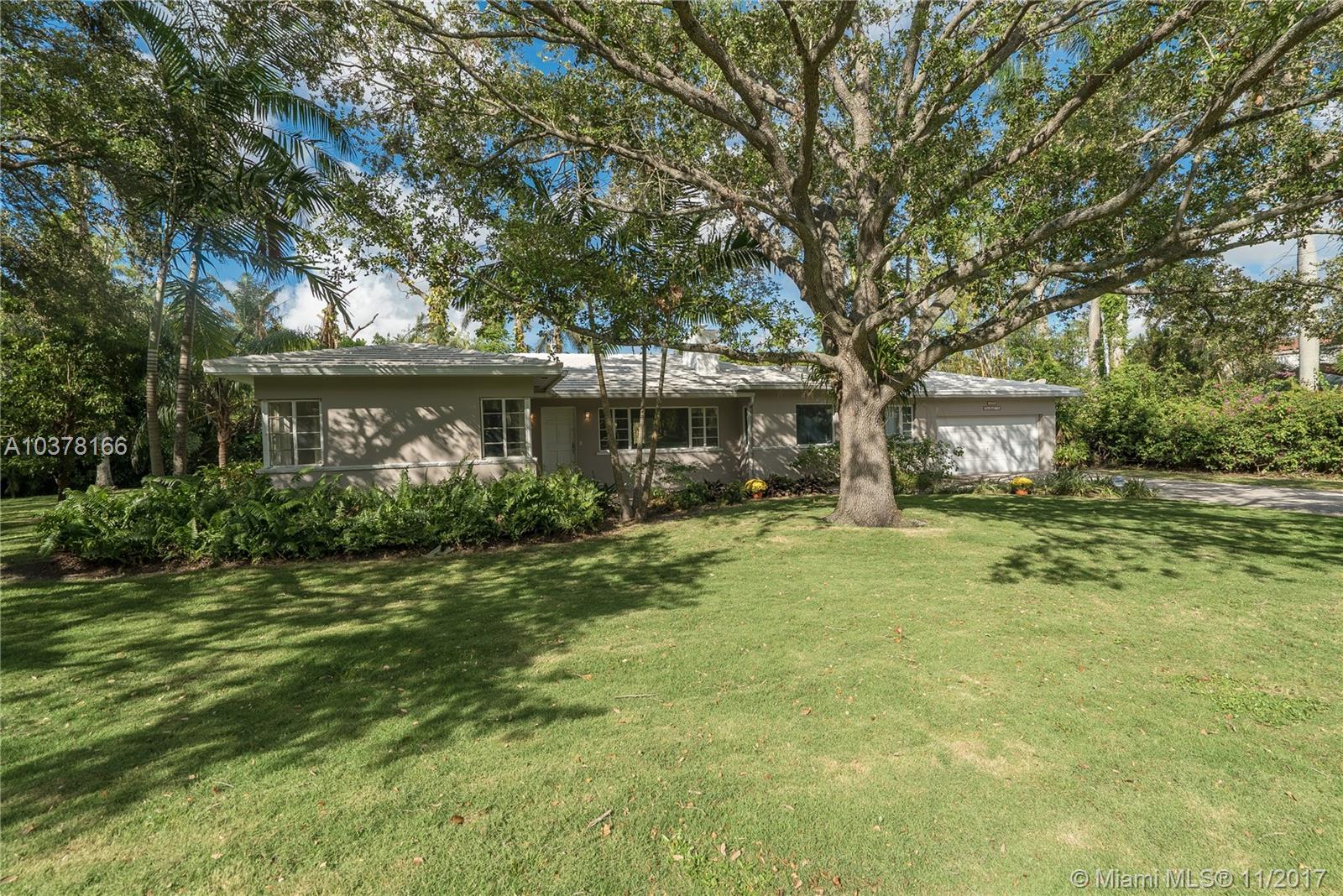 Secluded under the tall oaks & royal palms you’ll find this mid-century ranch on a 17,600 square foot corner lot in the prime area of George Merrick’s Italian Village. This 4 bed 3 bath residence includes 3,444 sq ft actual area. It has a new Bahama style tile roof, original Cuban tile flrs thruout, plaster cove moldings in the formal living & dining rms, vaulted beamed ceilings in the family rm & a fireplace. French pocket doors separate the living rm & family rm. 3 spacious bedrooms & 2 bathrooms in the main house with a separate 1/1 guest house. There is a huge 2 car garage. Rarely do you find a property with such a large lot in Coral Gables where you have room to expand the original home or build new in keeping with many other impressive homes in this quiet enclave.