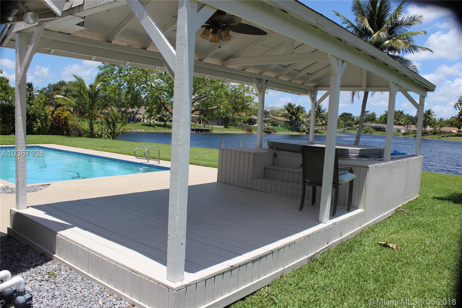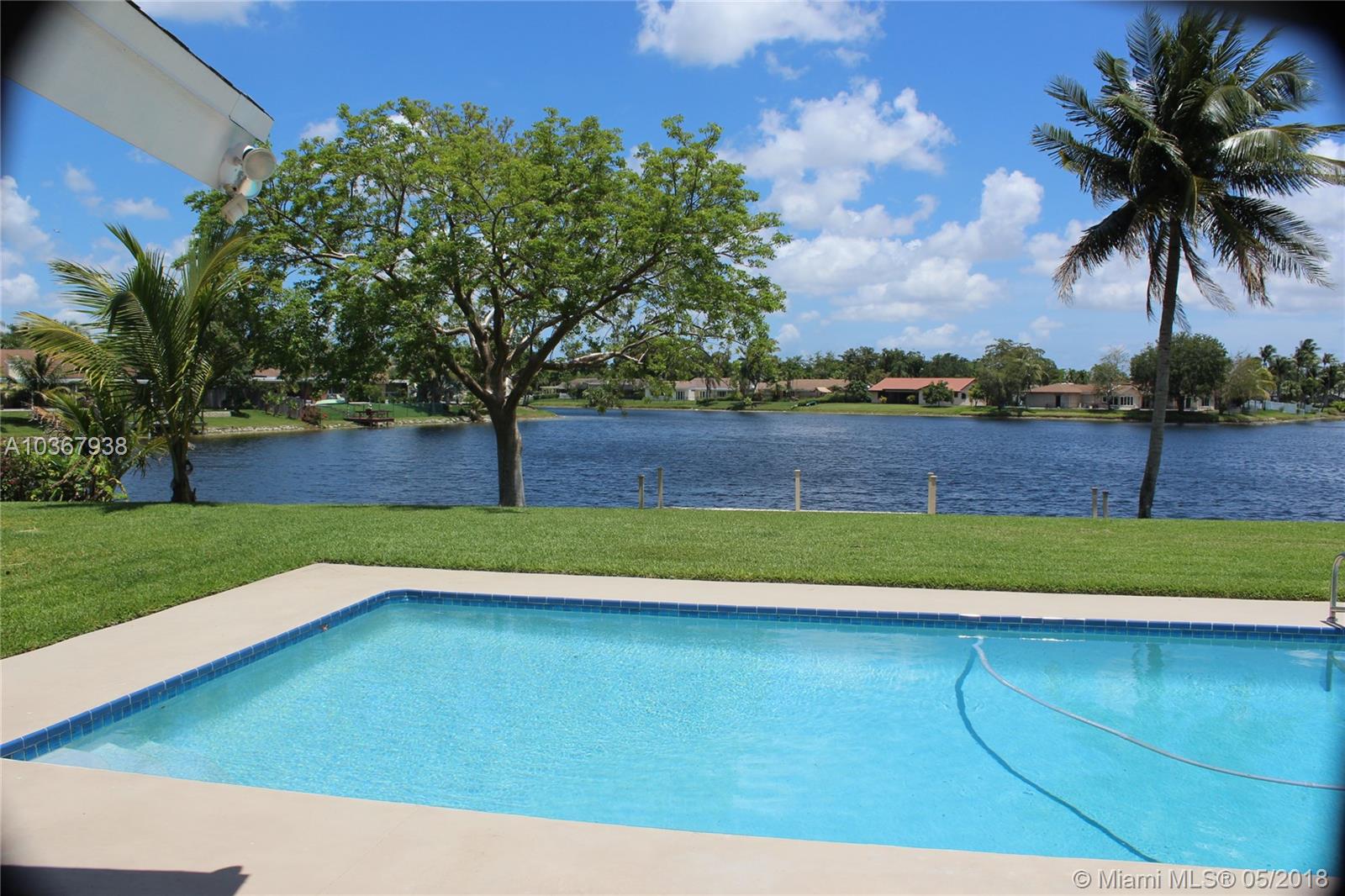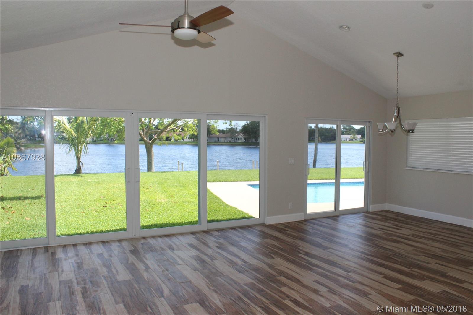Incredible Cooper City lake home on the best lot in Rock Creek. Quiet cul-de-sac, huge yard and driveway. Imagine looking out your back yard through a wall of windows to an expansive yard and over 100 ft wide view of the lake. You can fish from your 30 ft. new dock or take your boat out for a day on the lake. This fully remodeled home has a lot to offer. A separate covered deck with a private built in hot tub, heated saltwater pool, huge kitchen with high end appliances, new impact windows and doors, brand new working fireplace, remodeled air conditioned garage, front load washer/dryer, tankless water heater, new multi speed air conditioning, fruit trees, huge living and dining room. Pool resurfaced with new tile. Your dream home awaits. A rated schools. New sprinkler pump.