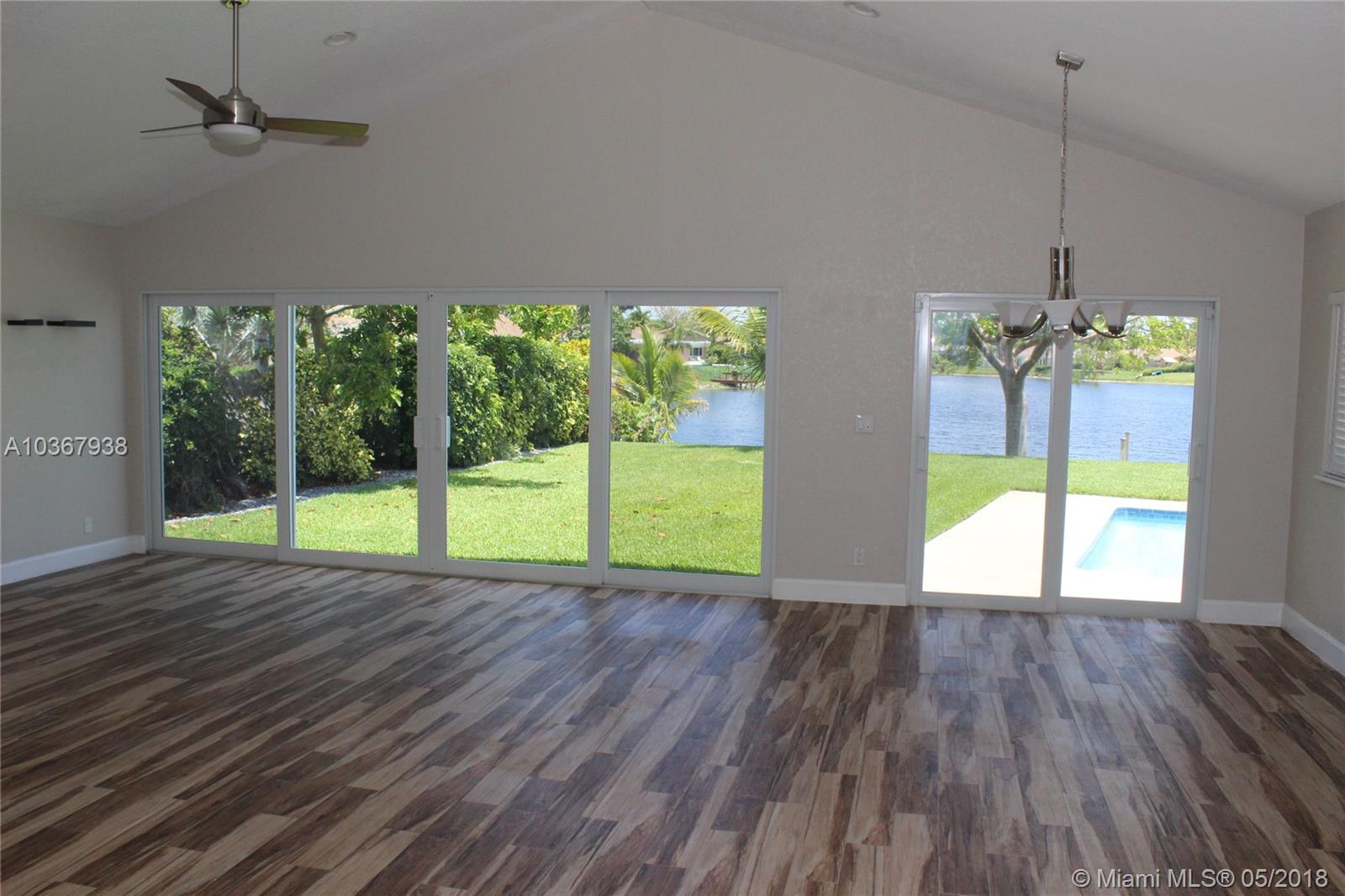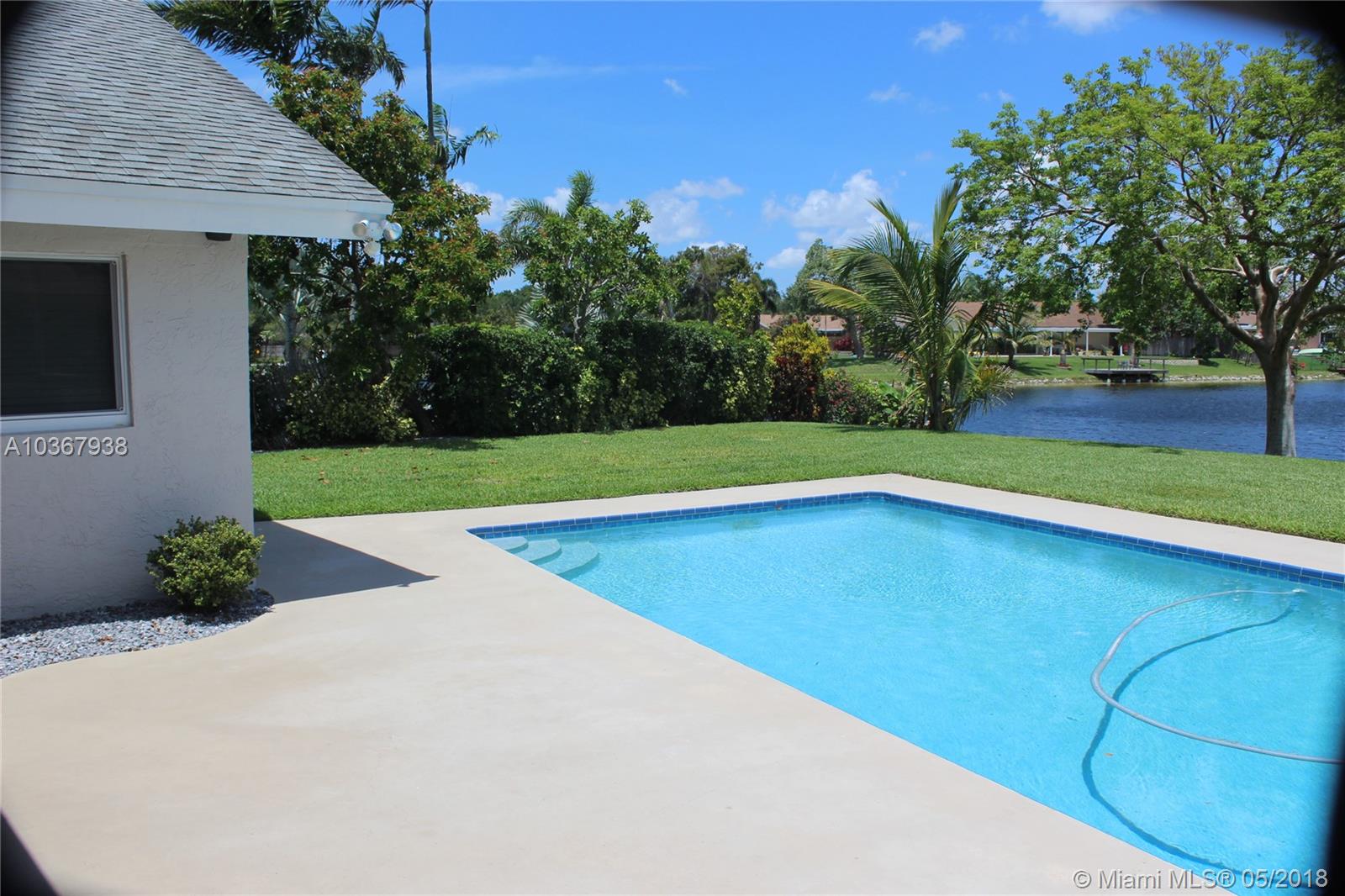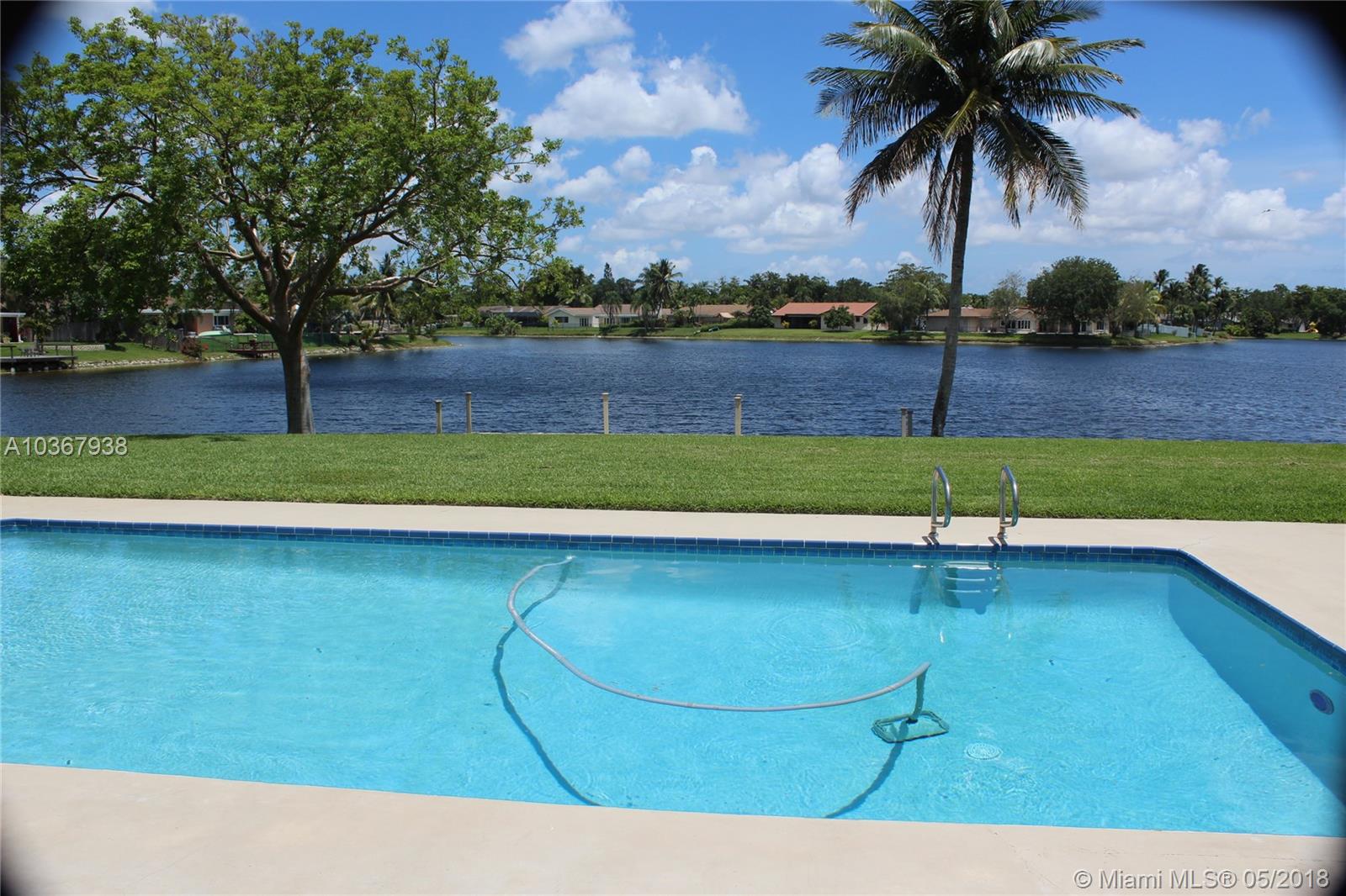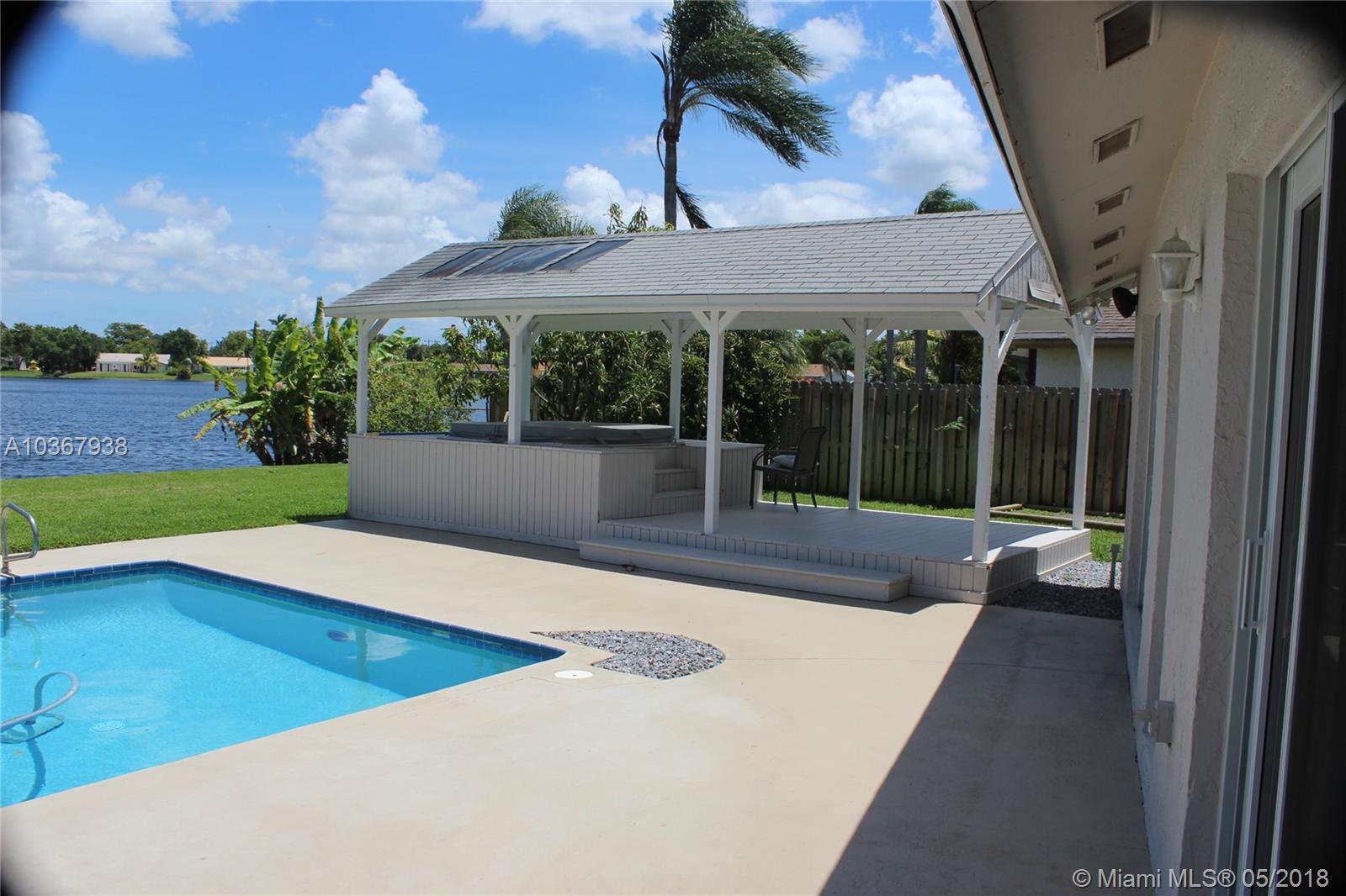 Incredible Cooper City lake home on the best lot in Rock Creek. Quiet cul-de-sac, huge yard and driveway. Imagine looking out your back yard through a wall of windows to an expansive yard and over 100 ft wide view of the lake. You can fish from your 30 ft. new dock or take your boat out for a day on the lake. This fully remodeled home has a lot to offer. A separate covered deck with a private built in hot tub, heated saltwater pool, huge kitchen with high end appliances, new impact windows and doors, brand new working fireplace, remodeled air conditioned garage, front load washer/dryer, tankless water heater, new multi speed air conditioning, fruit trees, huge living and dining room. Pool resurfaced with new tile. Your dream home awaits. A rated schools. New sprinkler pump.