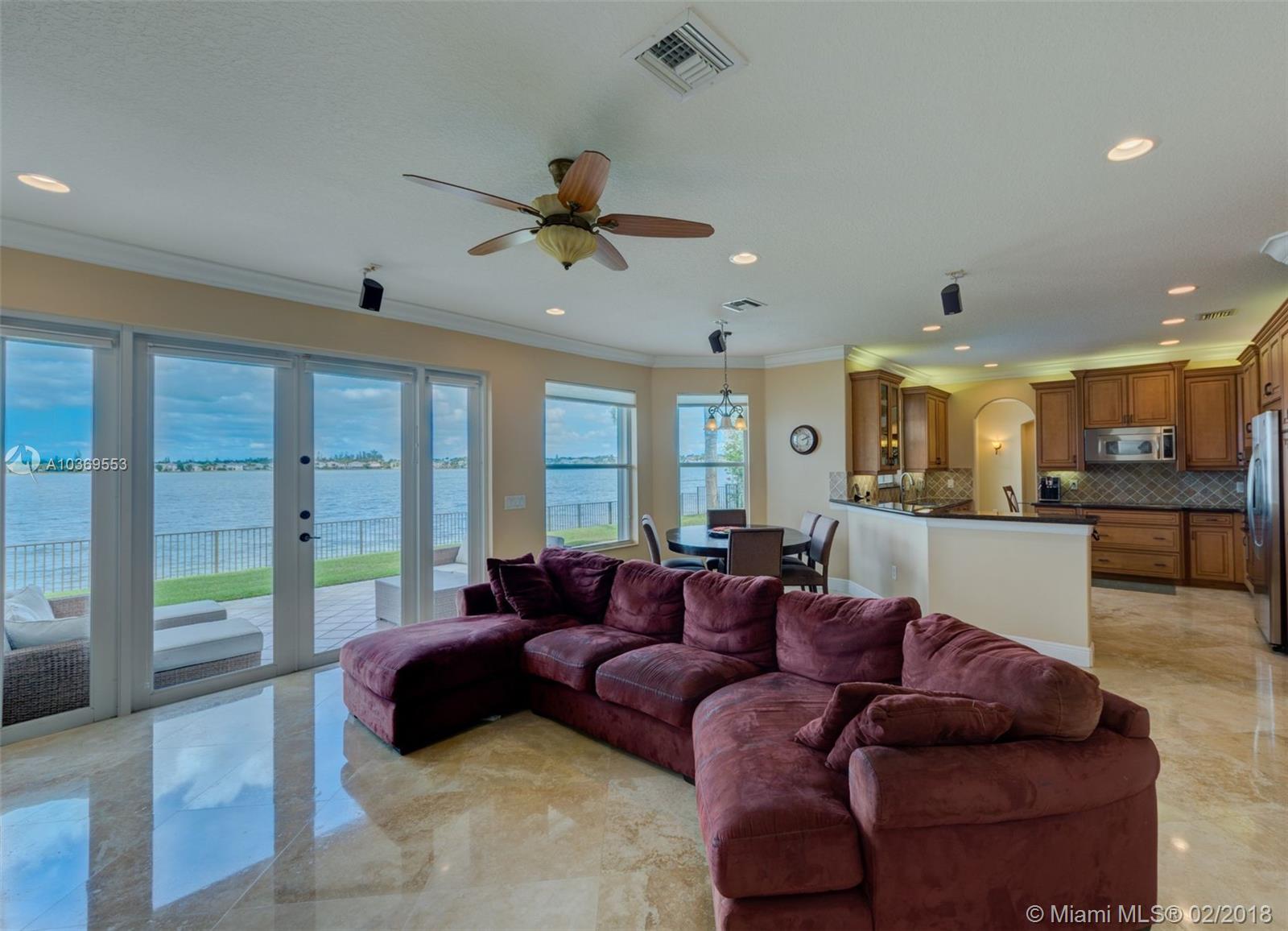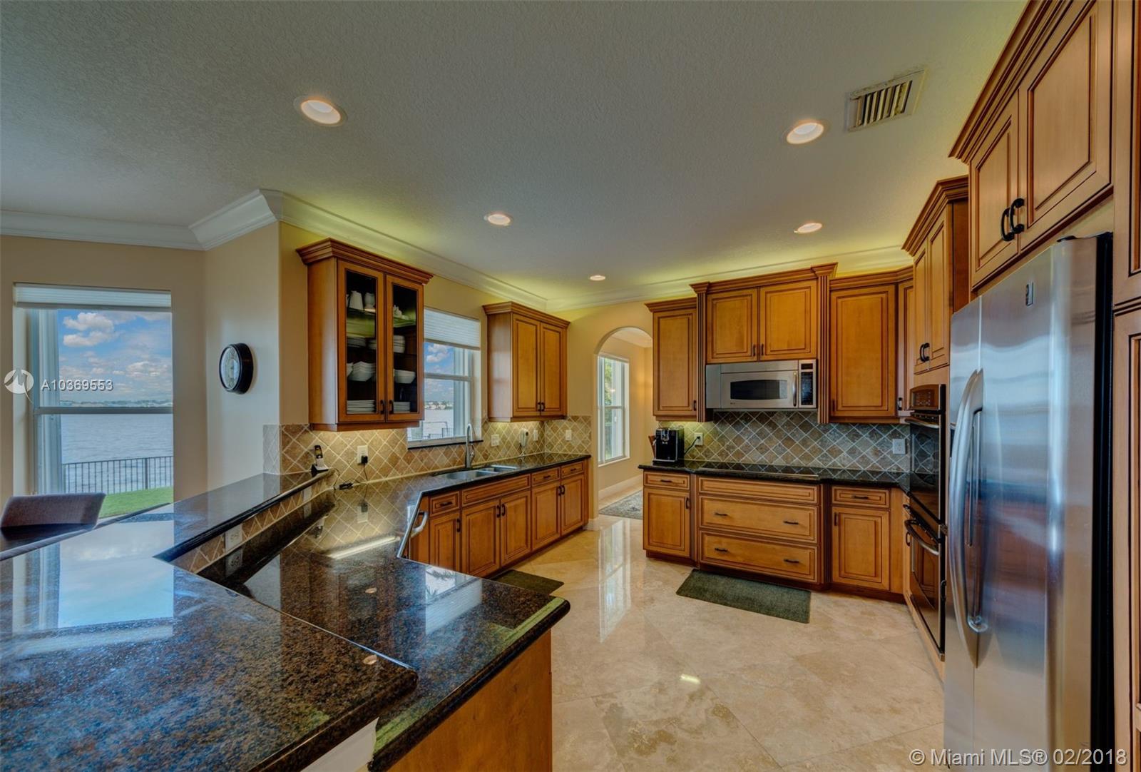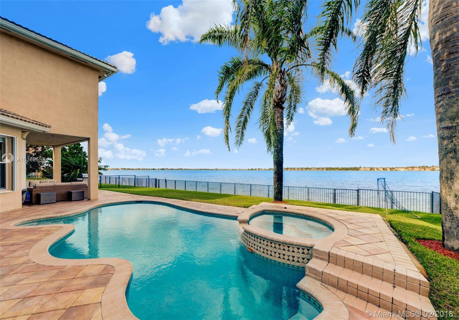Step into this spectacular estate home and be greeted with exacting standards, premium finishes and spellbinding panoramic lake views. This oversized home features a full bed-bath downstairs PLUS a 6th bedroom builder's option that currently opens as an expansive LOFT. The desirables Buyers seek include a heated POOL with salt water system, an upgraded kitchen with custom cabinets and spacious breakfast area, travertine tile that adorns the entire first floor with engineered wood on the entire second floor, recessed LED lighting with high doors and ceilings throughout, custom plantation shutters, crown molding, accordion shutters on most windows, a fenced-in yard with auto sprinklers, and more. Conveniently located in a guard gated community near schools, shopping, and dining.
