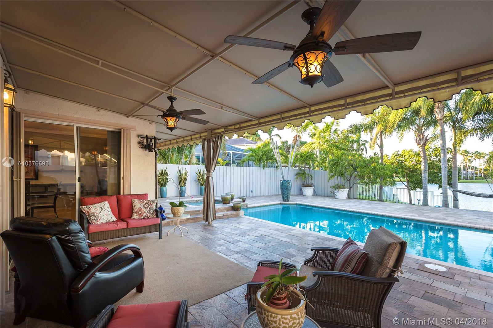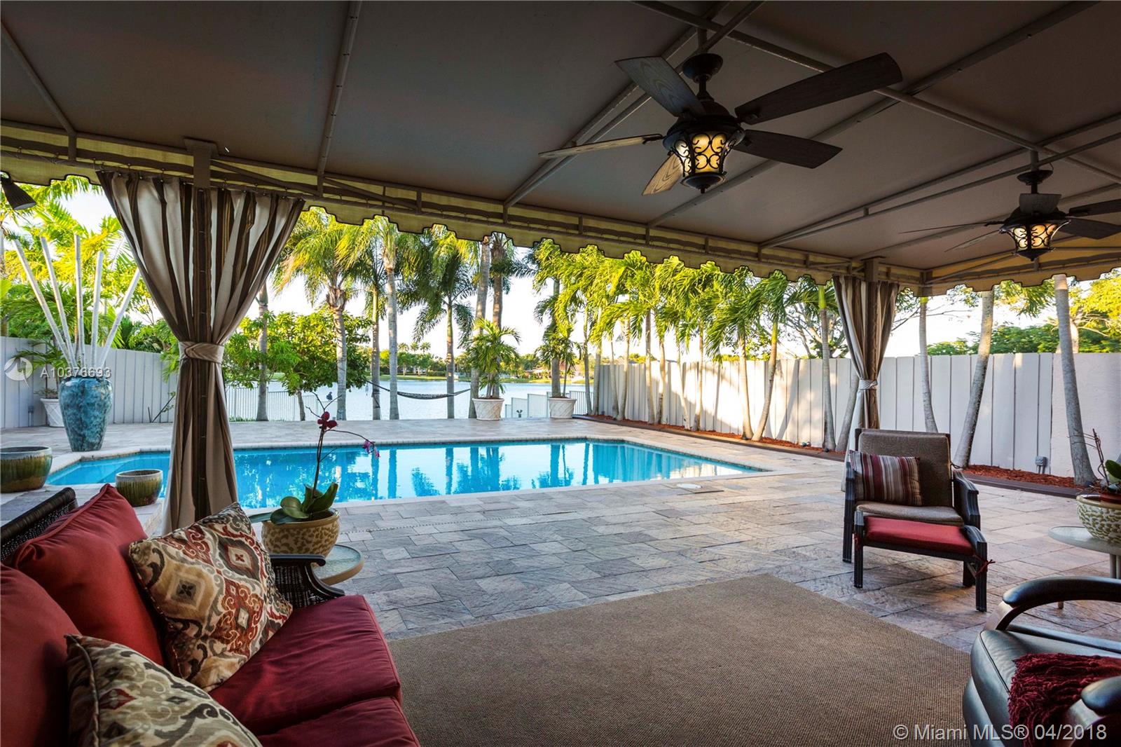 A RARE find in this community! The only lakefront home in this community with its own private pool and spa. Everything in this beautiful home has been upgraded. A privacy fence encloses your private tropical escape. Gated community offering 24 hr security playground, community pool, tennis and fitness center. Evening strolls are a delight in this well kept, pristine neighborhood with lake views. Low HOA fees, and very close to Whole Foods, shopping and restaurants. Great locations with easy access to highway.