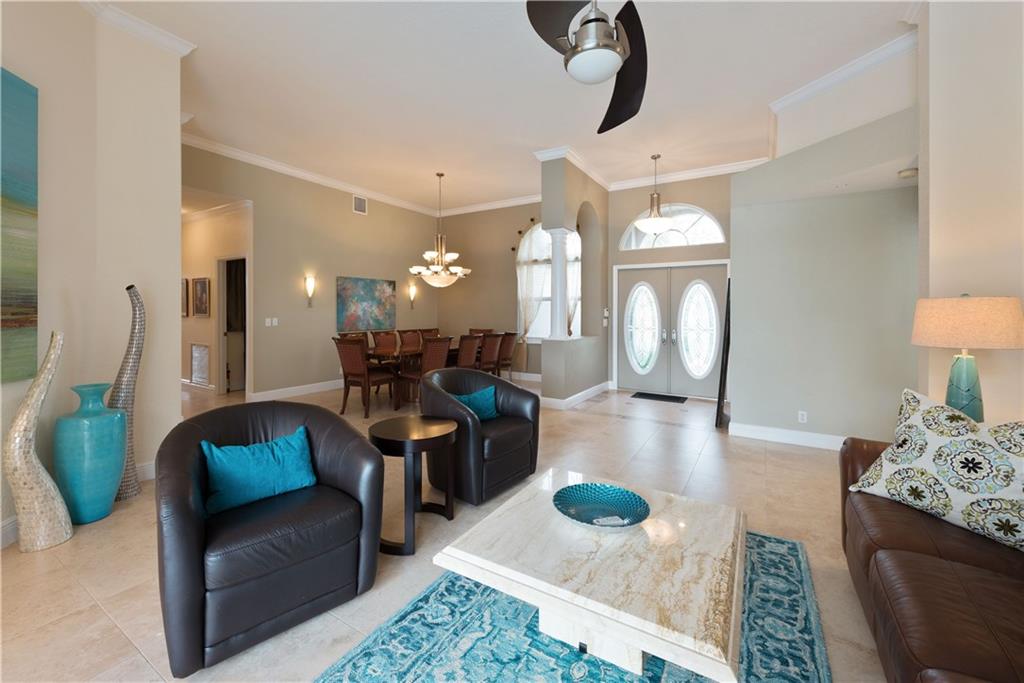 Large WATER FRONT home, gated neighborhood, fantastic for ENTERTAINING. Lakeviews are beautiful. Upgraded bthrms. Light&bright dining/family/living rooms w/vaulted ceilings. Gourmet ktn built for hosting: granite/highend appliances. Master ste: his/hers custom built-in, walk-in closets, w/private lakeview. Lrg screened-in patio: heated pool/spa/lounge area/bar/grill space. Custom cabinetry in office. Generator/shutters/impact windows. GAME ROOM decked out w/bar/pool table & wet kitchen! A must-see home!