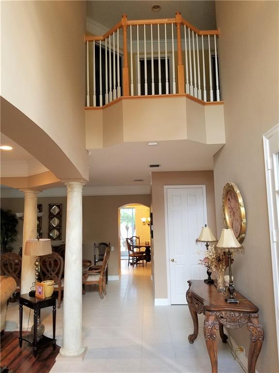 Gorgeous 2-story waterfront, pool home in gated community. Situated on a rare lot that optimizes privacy and lake & fountain views. The East & West facing exposures create a bright and cheery home. Spacious first floor has a volume ceiling entry, generously proportioned kitchen and family room, formal living and dining rooms, a den/office with French Doors and powder room. The second floor has 4 BR, 3 full BA. Enormous master bedroom and bath have spectacular water views. Abundantly spaced 3 car garage.