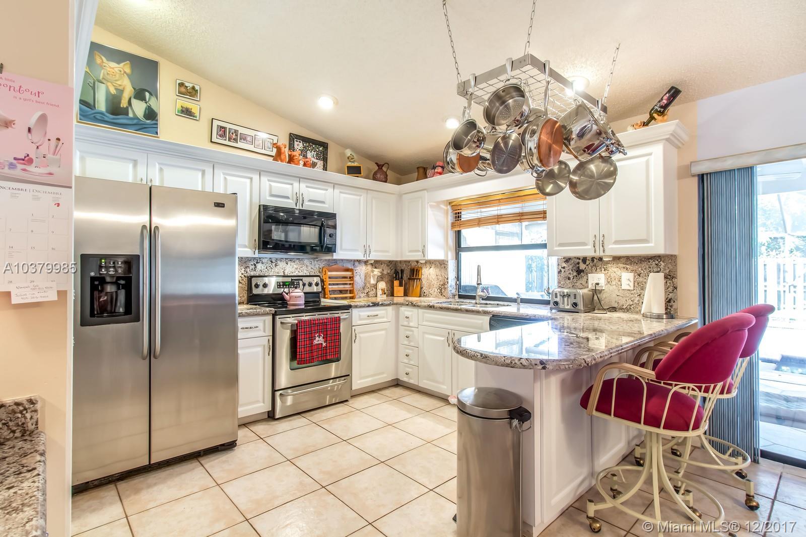 WHAT A WONDERFUL HOME TO COME HOME TO. After a hard day at work come home and jump into the pool for a nice swim or sit and relax in the spa. Solar panels so the water is always enjoyable. Owner has maintained this lovely 4 bedroom home for the last 25 years. Terrific layout with 2 bedrooms in front of home and 2 bedrooms in back of home. Perfect layout of kitchen for those who enjoy cooking...granite counters & stainless steel appliances. Kitchen overlooks backyard & screened pool and opens to dining room. Spacious living room. Roof is almost new. Home also has two car garage with shelving, extra refrigerator and separate freezer which stay with the home. Home generator will stay. Accordian shutters. Fenced backyard. Location is A+. Walk to The Walk. Too many things to mention.