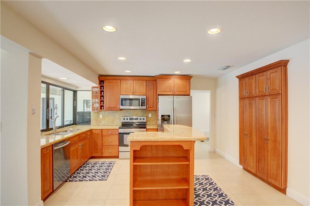 A decorators dream! This completely updated 3/2 pool home features impact windows in front of home, new kitchen with real wood cabinets & granite, huge pantry, new bathrooms, recessed lighting, new baseboards, Plantation shutters, new laminate floors, 3 year new roof, A/C & hot water heater less than 1 year, large covered patio, all new light fixtures, new paver driveway and pool completely remodeled with travertine, new tile & Diamond Bright. No popcorn ceiling here! Close to shopping, dining & highway.