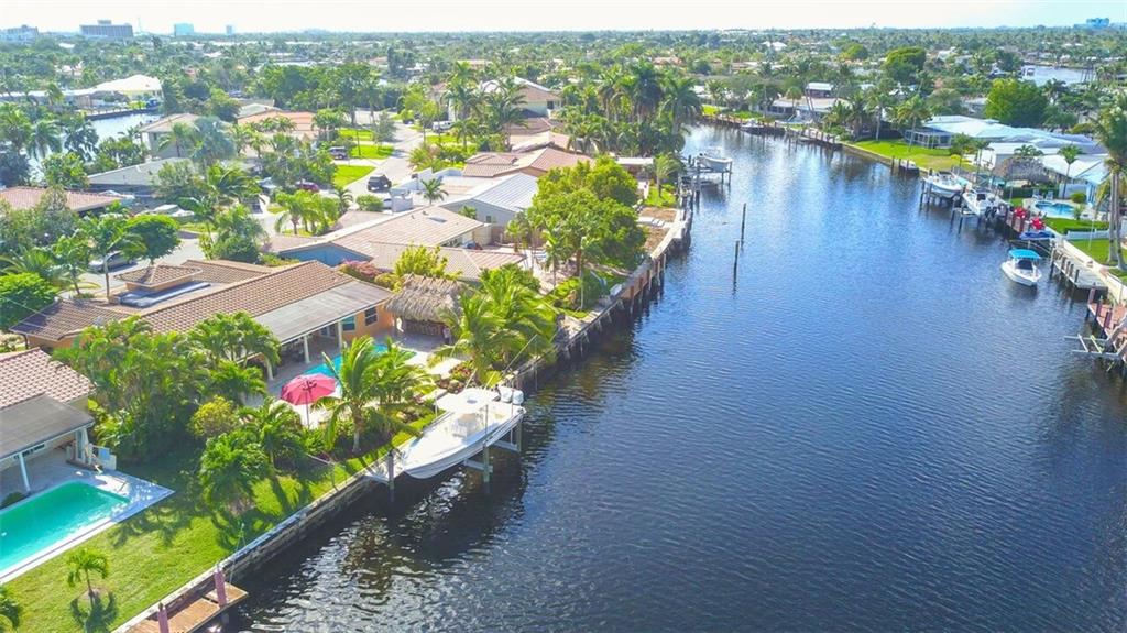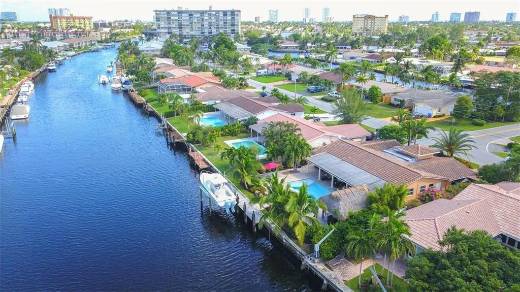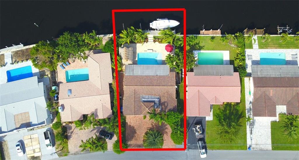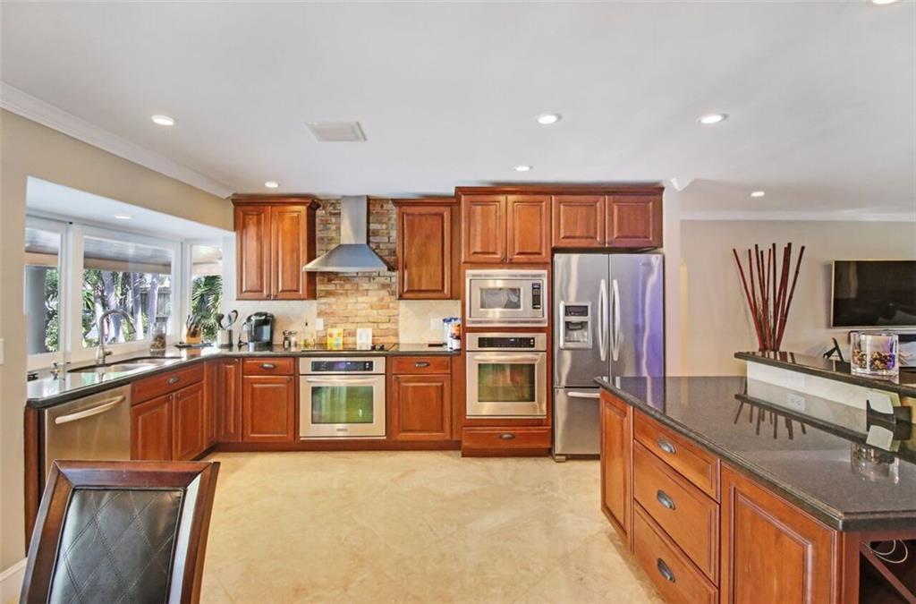 Entertainer's dream house! Stunning, completely upgraded waterfront masterpiece. Property was remodeled 5 years ago. SF added w/permits. Home boasts impact windows & doors,wood & marble flooring,crown molding,bonus office/sitting area off master,open kitchen w/custom cabinetry,granite,s.s. Kitchen Aid appliances,contemporary fixtures & quartz tops in bathrooms & much more! Scenic outdoor area featuring water views of extra wide canal,75' of WF,boat lift,salt pool,tiki bar & french-laid travertine deck.