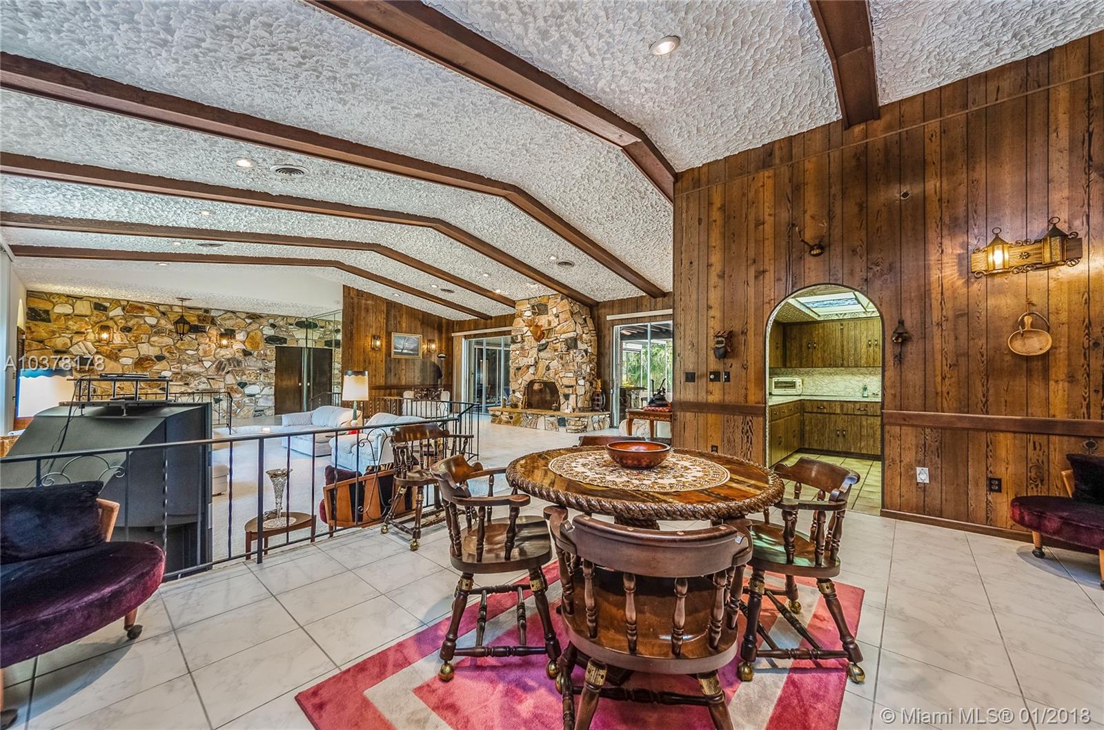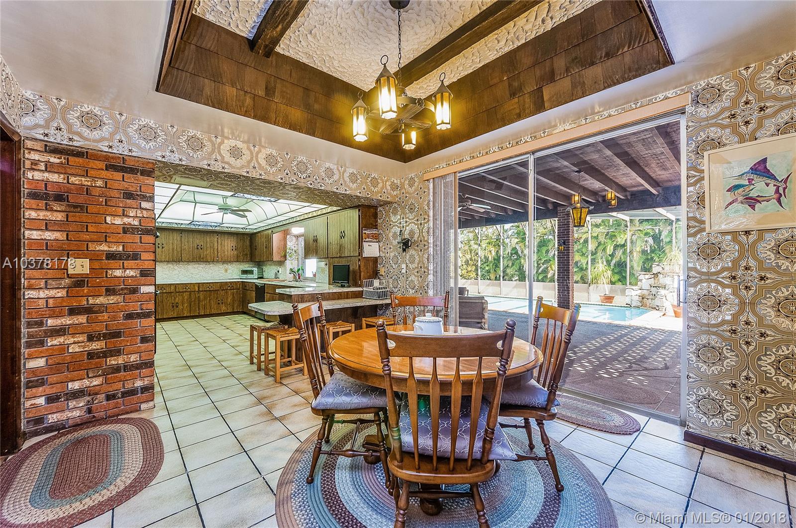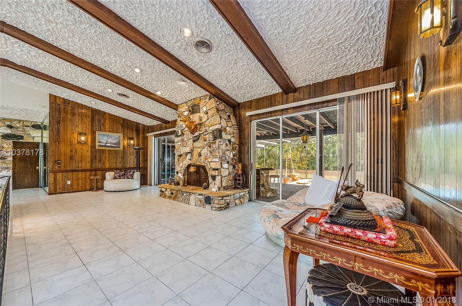 Renowned builder Ken Parker built this home situated on 37,897 SFf lot in North Pinecrest. The stone fireplace is a focal point for the large living/dining room space with vaulted ceilings and large natural light windows. Large living spaces include: 3bed/3baths, 3 car garage, laundry room, eat in kitchen with walk in pantry. Huge covered patio with screened in pool is perfect for entertaining Florida style. Hurricane shutters for sliding glass doors. A real gem waiting to be refreshed! Pinecrest Elementary School.