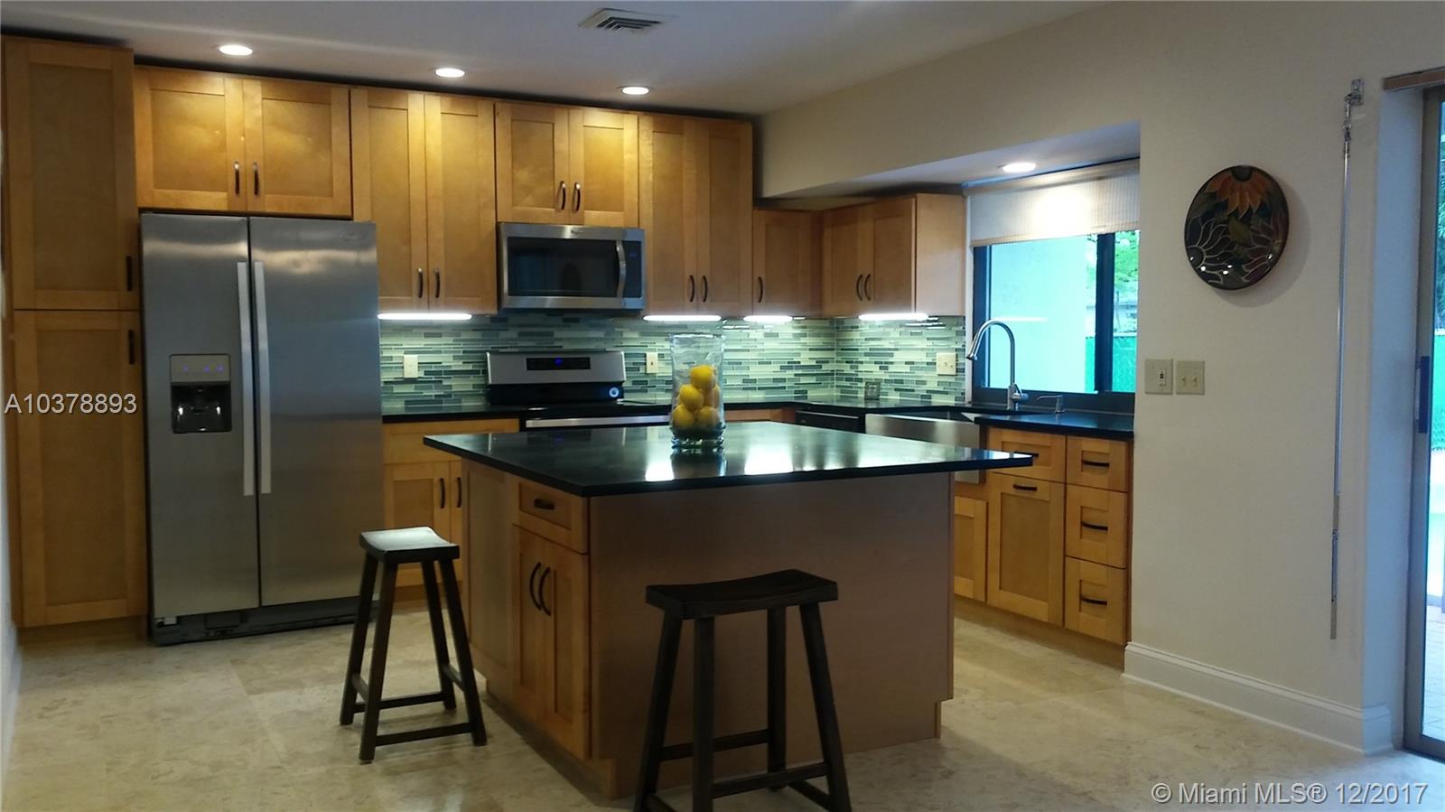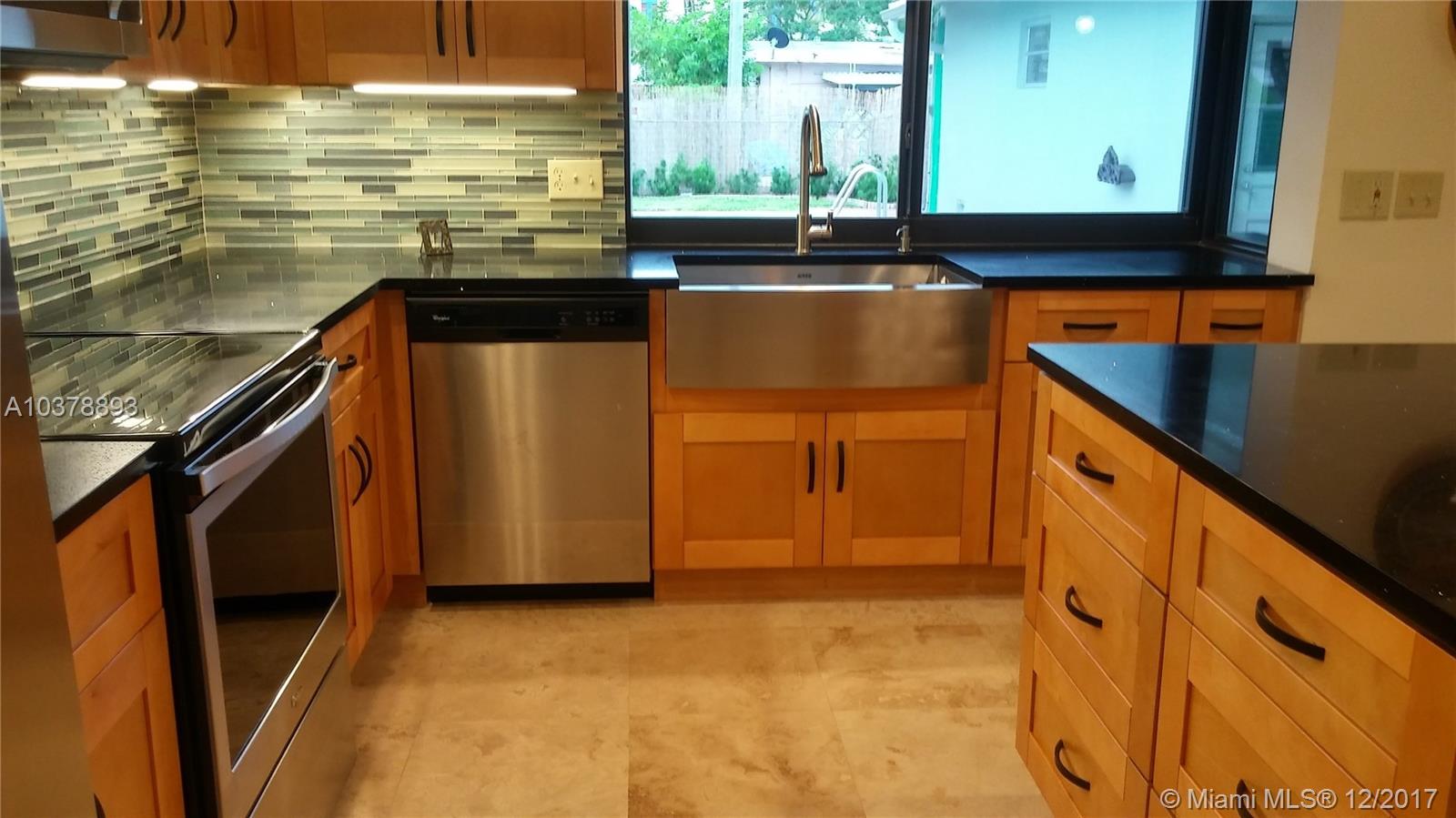 Completely renovated home in desirable Hollywood Hills. Spacious living room. Super-luxurious kitchen with new stainless appliances, stainless farm sink, huge island with beverage fridge, quartz counter-tops. Formal living room has bamboo flooring and the remaining living/kitchen areas have gorgeous Travertine marble flooring. Custom designed guest bathroom. Master with walk-in closet & renovated cabana bathroom. Fenced yard with pool & patio. Two-car garage with access from back alley. There's a third full bath in garage ready for future garage conversion to living space. Interior laundry facilities. Circular driveway out front. A/C only about 8 yrs. old. Minutes from access to main highways, shopping, and beach areas.