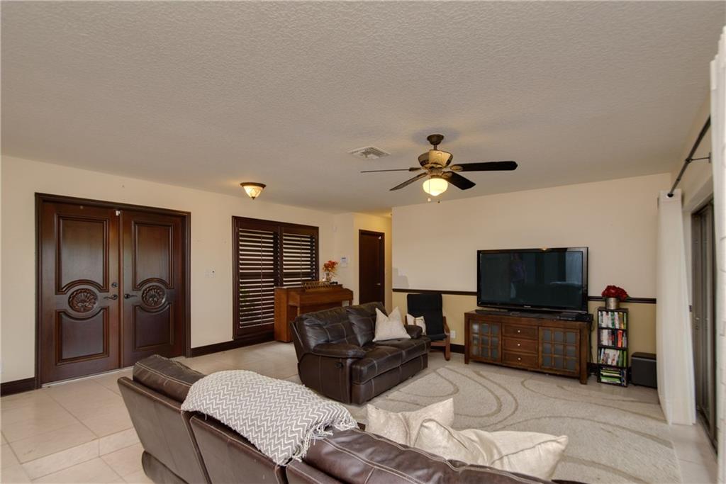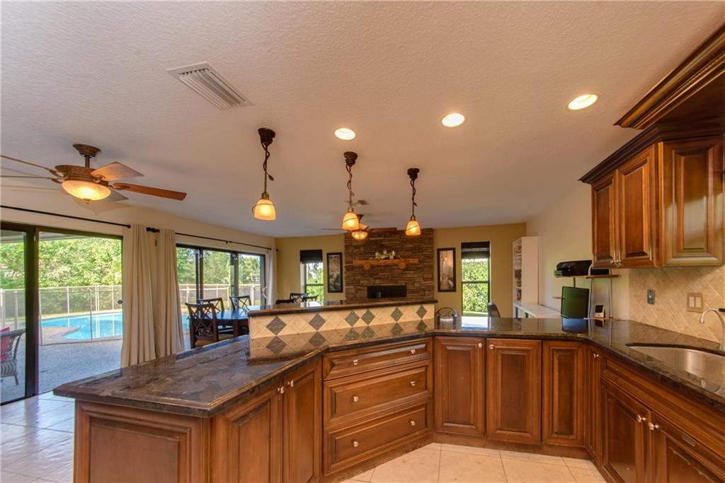 Beautiful 4 bedroom/2 bathroom fully remodeled home w/ Pool on large fenced corner lot & lake. Hurricane Impact windows, sliding glass doors have auto rolling shutters. Split floor plan, large & open concept. Kitchen has real wood cabinetry, SS appliances, real stone backsplash & Level 3 granite tops. Both bathrooms have been fully remodeled including frameless shower glass & modern fixtures. Double shower heads & jetted tub in master bath. Wireless Security System & Nest AC control. Newer A/C and ducts.