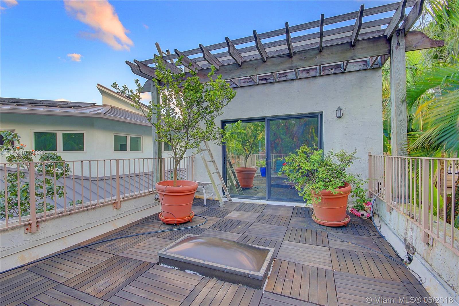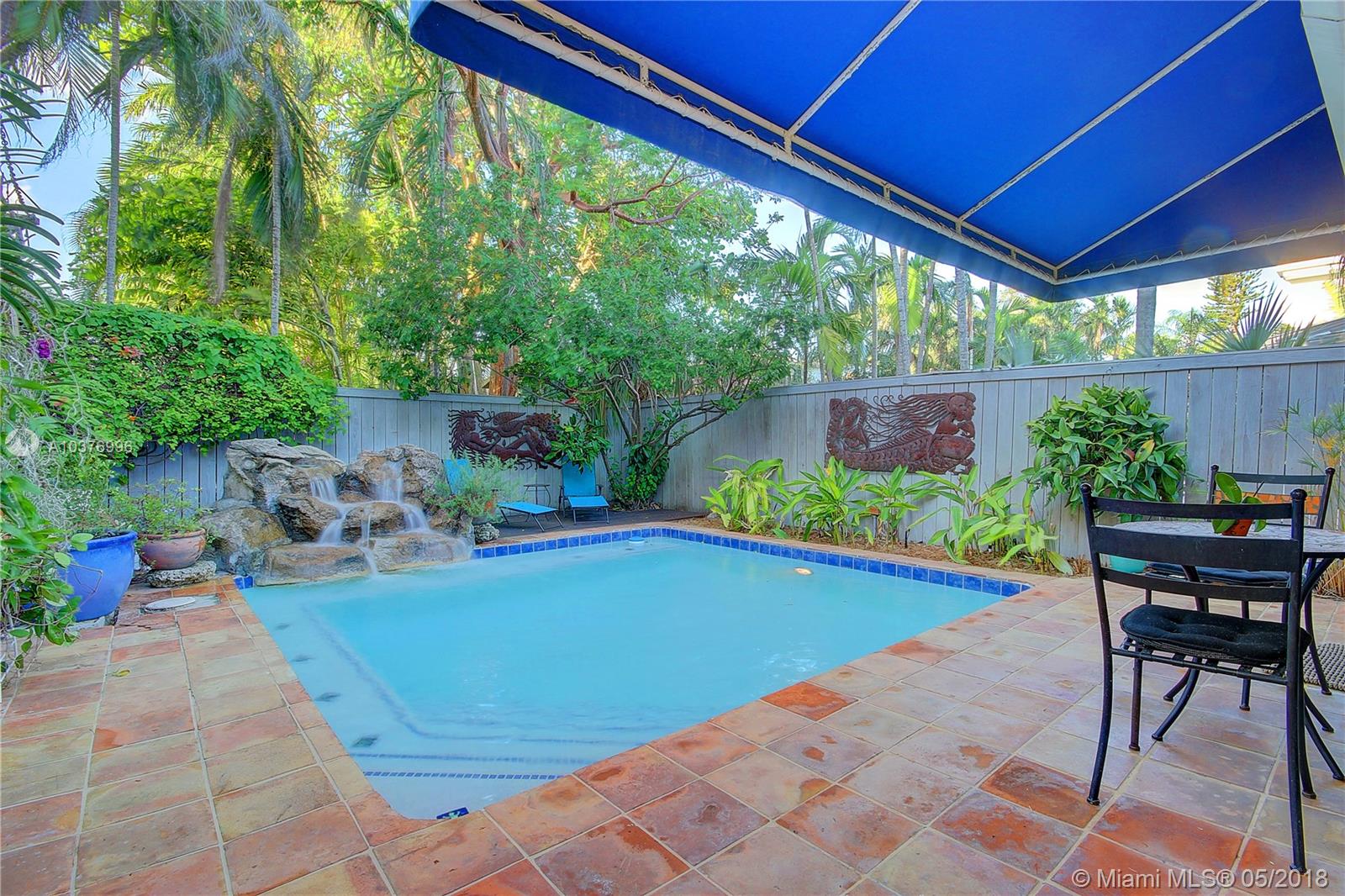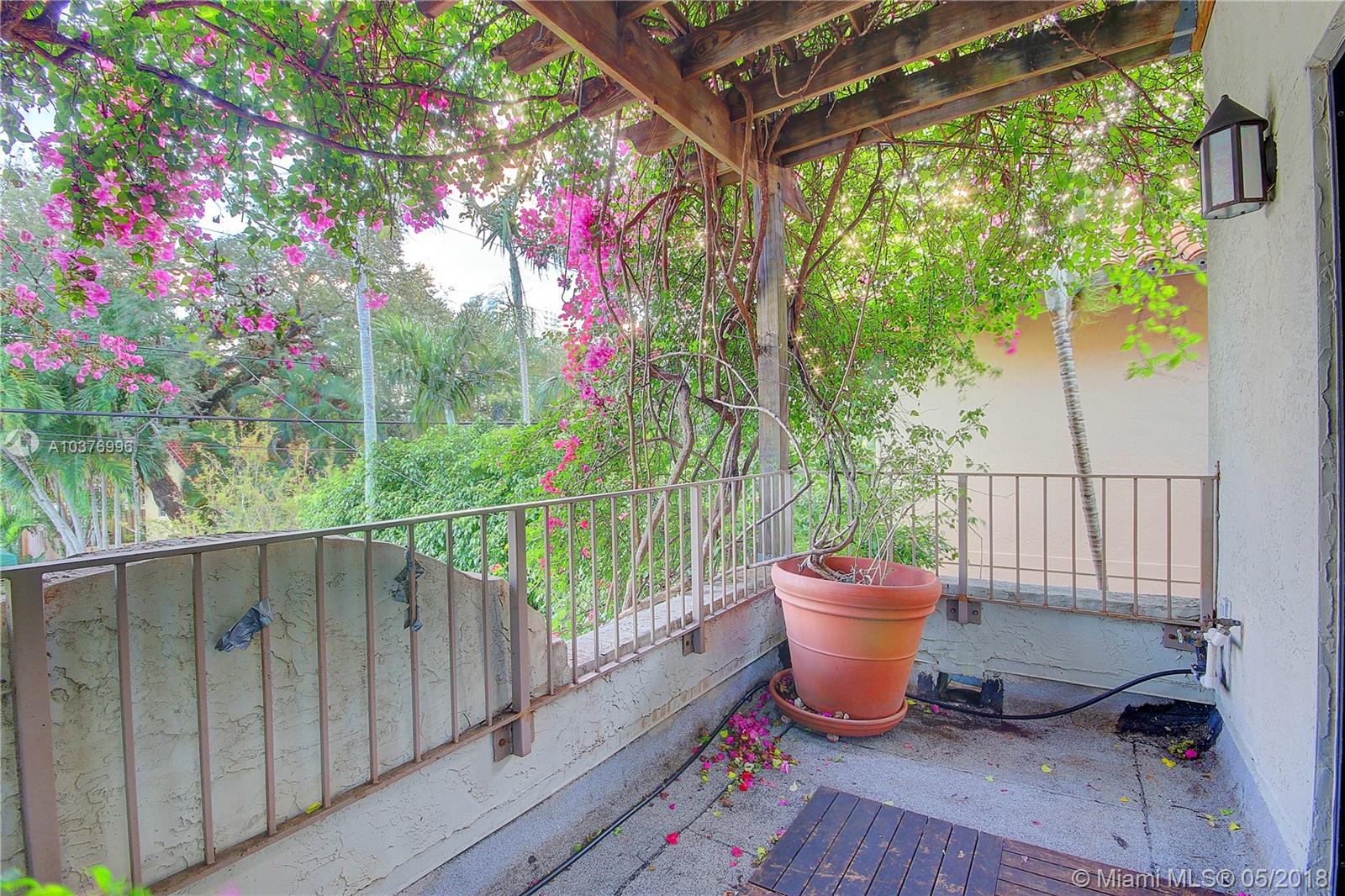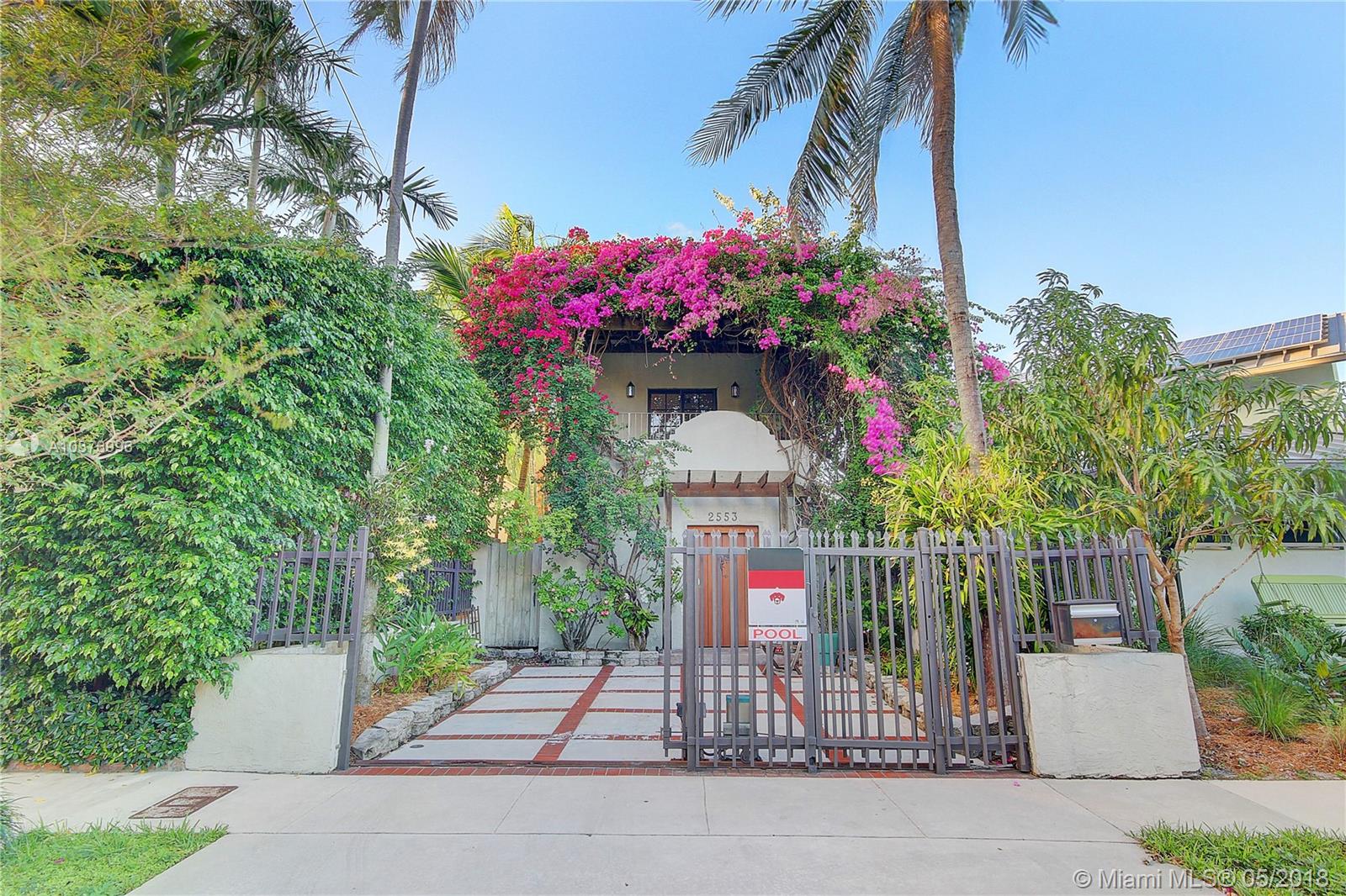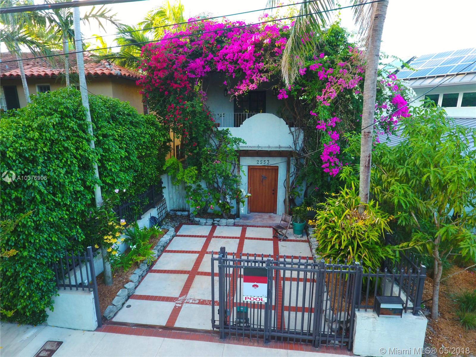 Casa Bougainvillea, rebuilt single family home in 2003 architecture by Max Strang. Unique 2 story home, with low maintenance. Features include, a pool /spa, waterfall /fountain, pressure-treated pine fence. This home flows with two skylights providing natural light throughout and high ceilings. Irrigation system downstairs, one upstairs. Separate water meter for irrigation and pool. Roof top deck with NE exposure provides views of garden and pool. 2 Master bedrooms, 3rd room great for office /den. Equipped with Fiberglass entry door, gate motor, new dual A/C units. Near beaches, downtown, Brickell, Key Biscayne, marina's, parks, fantastic schools and all Coconut Grove amenities. High Elevation, no flood zone and location. Wonderful opportunity to move into very desired neighborhood.