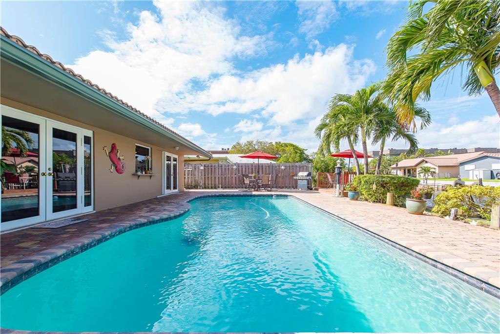 Serious seller wants it sold. Desirable 75’ waterfront home on a quiet street offers 4BR/3BA/2CG and pool. Features include a renovated open kitchen with custom cabinetry, granite, and stainless appliances that opens to cozy family room. Spacious living and dining rooms, interior laundry, two bedrooms are ensuite with an additional guest/cabana bath. Enjoy beautiful water, pool and garden views from impact windows and doors. Large paver pool area with dock, perfect for entertaining family and friends.
