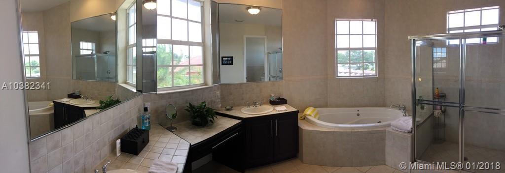 AMAZING FIND - LUXURY ON THE GREEN - This stately, unique 2-story 5 Bedroom 3.5 Bath gem offer an impressive open floor-plan, pool with spa, and an over-sized separate master suite upstairs with 350 sq. ft. terrace overlooking the golf-course at Country of Miami Estates. Master suite offers a giant bathroom spa, and two walk-in closets. The huge custom island kitchen is a chefs dream with tons of cabinets, and massive windows through the entire home. Completing the inside includes formal dining, sunken Florida room, breakfast area, pantry, washroom, extra-large 2 car garage, and covered patio perfect for entertaining directly on the golf-course. Dazzling curb appeal featuring impressive driveway with large palm trees, a massive front and back yard with privacy hedges.
