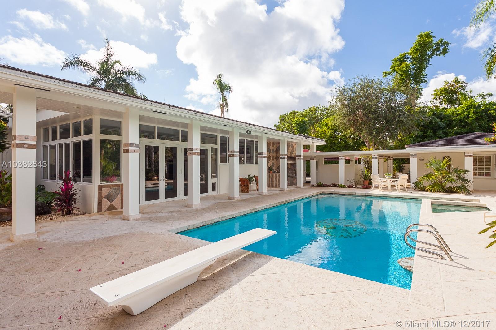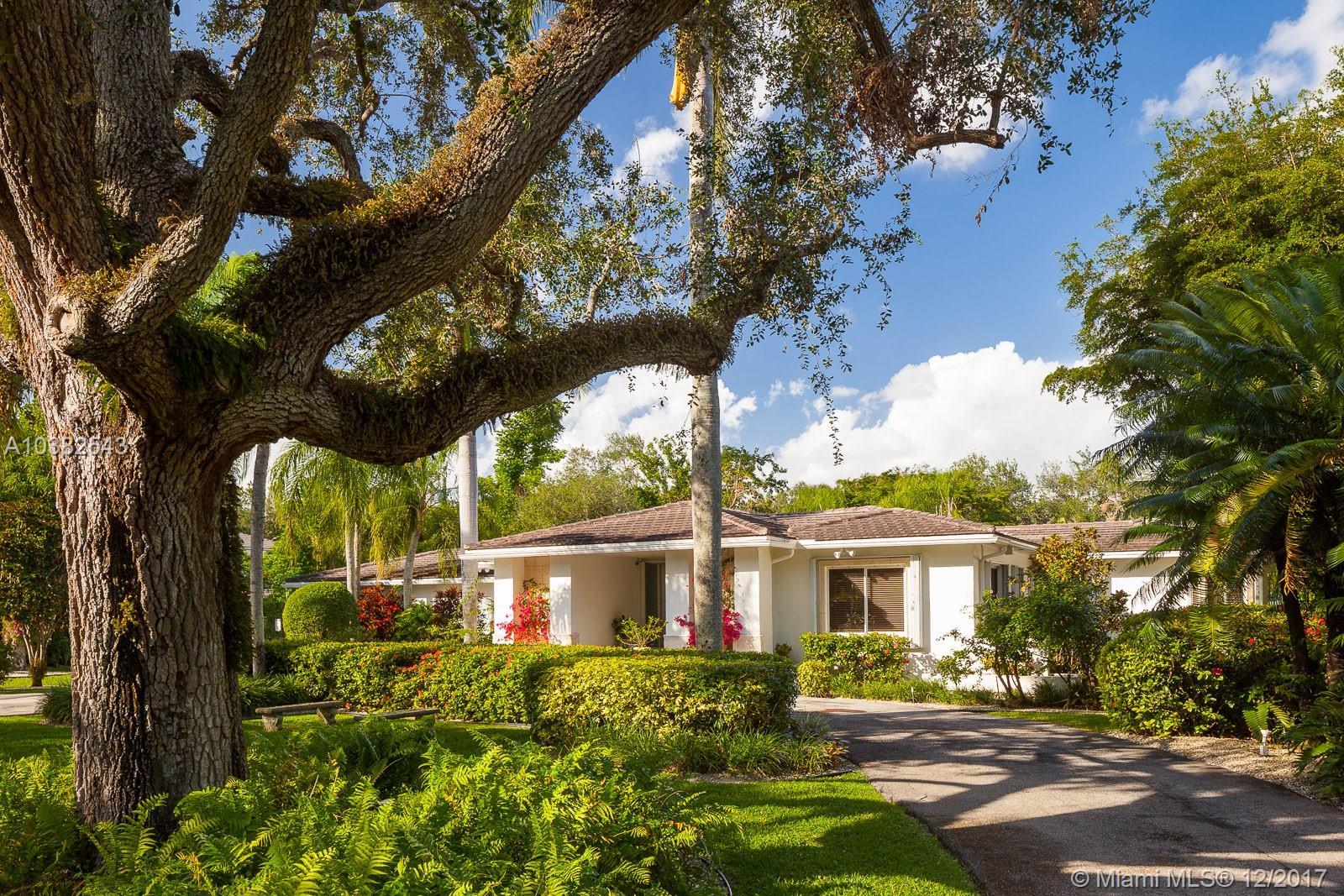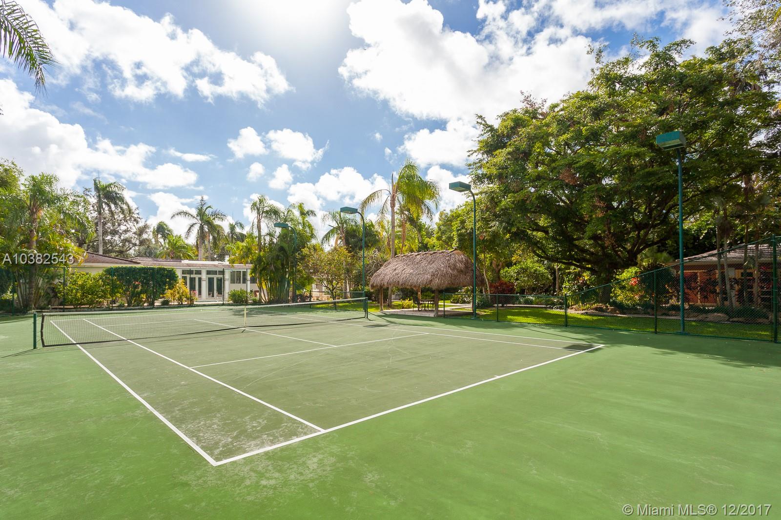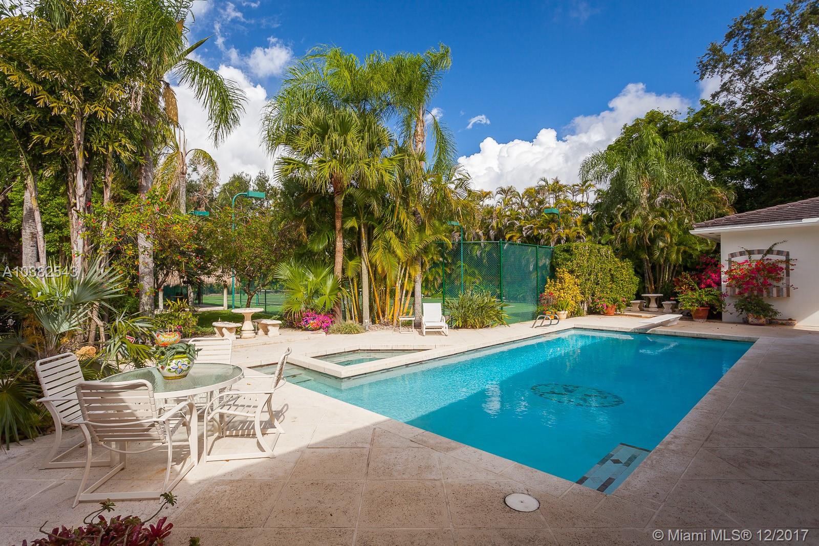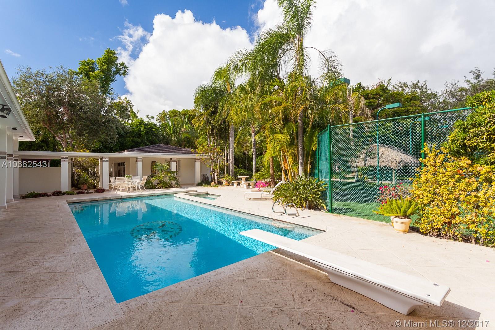 Dive in! This one-story N. Pinecrest home, on a 50,000’ lot, offers the warmth of a home with the amenities of a resort. Lighted N/S tennis court with a chickee hut sits astride a separate guesthouse as well as a third house AKA “the clubhouse.” Add the pool & BBQ & you have a home that will be a memory maker for family & friends. Rainy outside? Come on in and enjoy a movie in the home theatre. Lushly landscaped, there is a covered carport as well as a 2 car garage. Pinecrest Elementary. A Very Special Home.