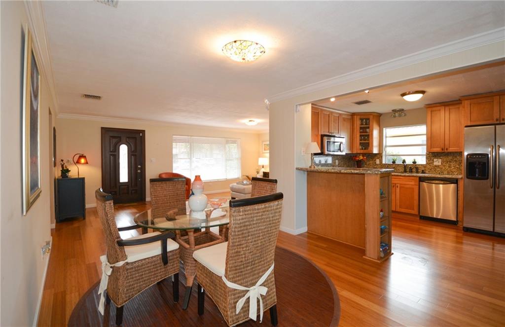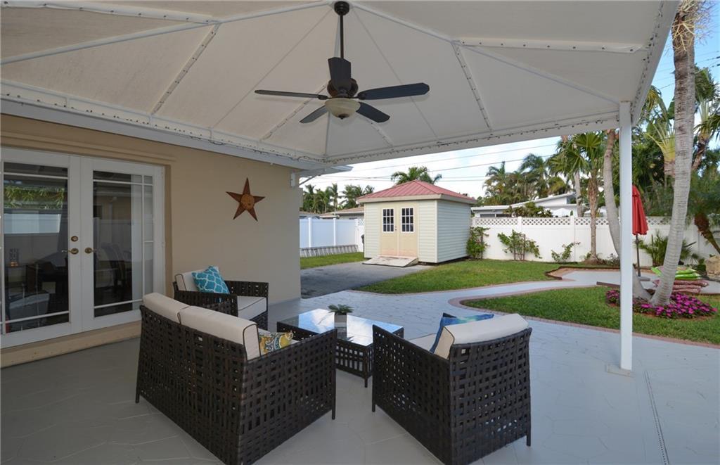 YOU WILL TRULY FEEL AT HOME AS SOON AS YOU WALK INTO THIS GEM. OPEN FEEL WITH THE REMODELED KITCHEN AS THE CENTER OF THE HOME FEATURING STAINLESS STEEL APPLIANCES, PLENTY OF STORAGE, WINE COOLER AND A BAR. NICE SIZE LIVING AREA WITH FRENCH DOORS THAT INVITES YOU TO THE BEAUTIFUL FENCED IN YARD. BACKYARD HAS A TROPICAL FEEL WITH A LOVELY PATIO/SHADED SITTING AREA. BEDROOMS ARE NICE SIZE AND 2 REMODELED BATHROOMS. GORGEOUS BAMBOO FLOORING. LARGE SHED FOR STORAGE. GREAT FLORIDA LIVING!