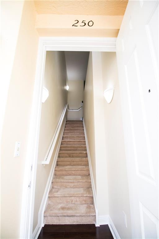 BEAUTIFUL 2 BEDROOMS, 2.5 BATHS 2 STORY TOWNHOME W/PARQUET FLOORS IN THE LIVING AREAS & CARPET IN BEDROOMS. LIVING AREA FEATURES A BALCONY & A 1.5 BATH W/ SEPARATE DINING ROOM. KITCHEN HAS GRANITE COUNTERTOPS, STAINLESS STEEL APPLIANCES, BREAKFRONT W/ DOOR CONVENIENTLY LEADING TO ASSIGNED PARKING SPACE & A SEPARATE LAUNDRY ROOM. SECOND FLOOR FEATURES A LOFT, MASTER BEDROOM W/ A LARGE WALK-IN CLOSET, BATH W/DUAL SINKS & A PRIVATE BALCONY. 2ND BEDROOM HAS A LARGE CLOSET W/ PRIVATE BATHROOM.