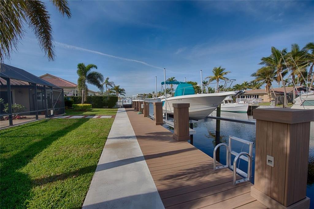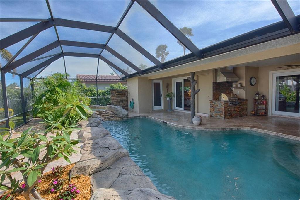 Remodeled in 2013, 3 bed, 3 full bath home w/hand-scraped 3/4" Teak floors throughout. Gourmet kitchen, Viking gas range & wine fridge, subzero refrigerator. All baths remodeled. Three 13' x 14' bedrooms, 2 master suites w/pool & water views. All impact windows/doors. Natural gas tankless water heater, grill & stove. Lot 80' wide on deep, no fixed bridges canal, 2 minutes to intracoastal waterway, 15 minutes to ocean. 70' dock w/new 20,000 lb boat lift. Saltwater pool & spa w/waterfall in screened patio.