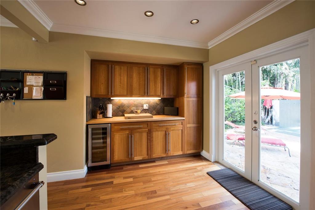 Quality Renovations in this immaculate home! New plumbing and electric, impact windows & French doors, barrel tile strapped roof, natural gas for stove & water heater. Stunning Brazilian chestnut wood floors, crown molding, European kitchen w/butcher blk & granite.Top of the line stainless appliances!Newer Mstr addition w/lg. walk in closet,German fixtures in mstr bath w/sep- shwr & spa tub. Heated Saltwater pl/w/waterfall! Security sys w/cameras. Nest Ac system & tropical landscaping.