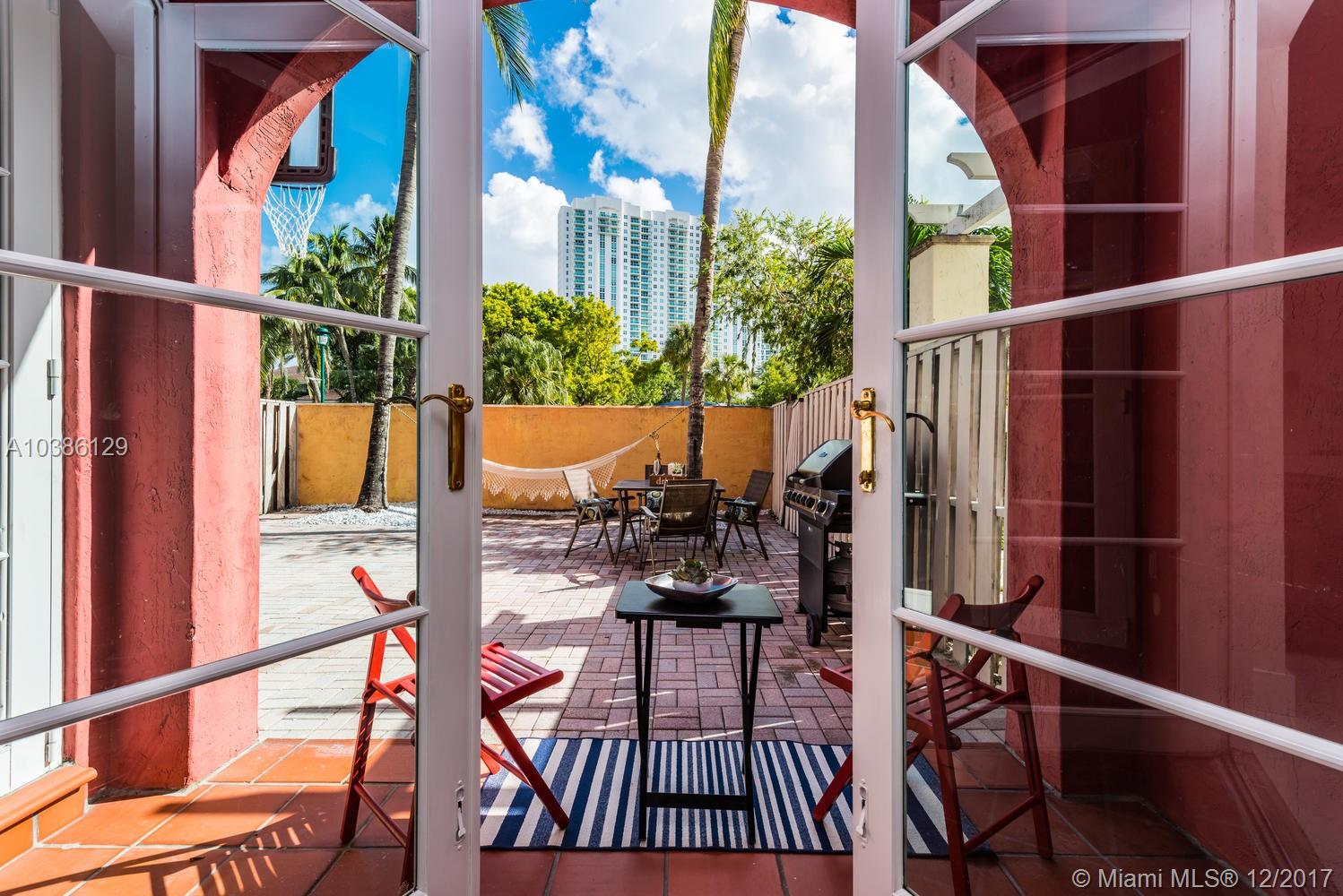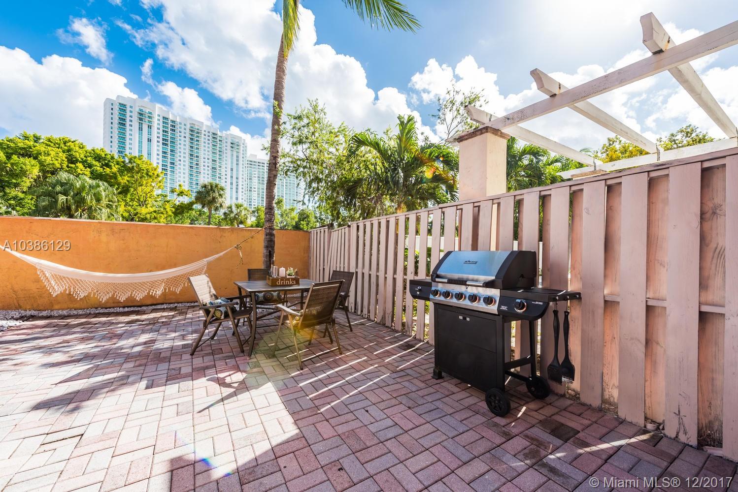 Live in the heart of Aventura! This adorable townhome with fabulous patio area is ready for new owners. Modern updates, beautifully designed, move in ready. Generous room sizes. Volume ceilings throughout. Tastefully, modern bathroom remodels. Upgraded appliances. New high efficiency a/c unit. Modern porcelain tile throughout to home. Gorgeous park view from bedroom balconies. French doors to generously sized courtyard. Close to beaches, mall, entertainment and the resort lifestyle Aventura is known for. Townhomes are rare in Aventura- this is you opportunity to own one! NOTE - Buildings are scheduled for pressure cleaning.