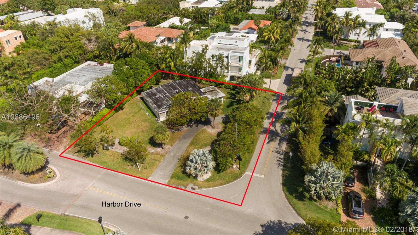 Oversized (9400 sq ft per attached 2017 survey!) corner lot, 3 bed/2bath, on prestigious Harbor Drive. Rare opportunity to build for Biscayne Bay views. Calm area of Harbor Drive. Feel free to drive by. Buyer must hook up to sewer line after closing (within 90 days).