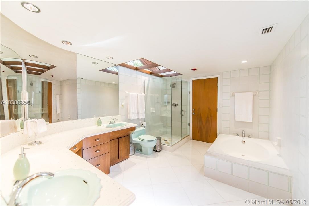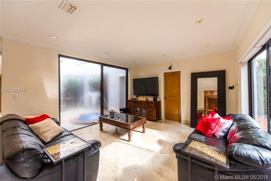 A unique Coral Gables residence custom built in 1983 by Architect Dov Liven. Designed w/gallery walls, 1st flr living area surrounds a glass atrium complete with a private spa for relaxation. Surrounded by Formal Dining, living, kitchen, family rm & guest bdrm w/en-suite bath. 2nd flr Master suite/bath with open pyramid wood beam ceiling. Balcony overlooks pool/patio. 3 bdrms, lg bath. Separate laundry & 2 car gar . Completes this beautiful home.