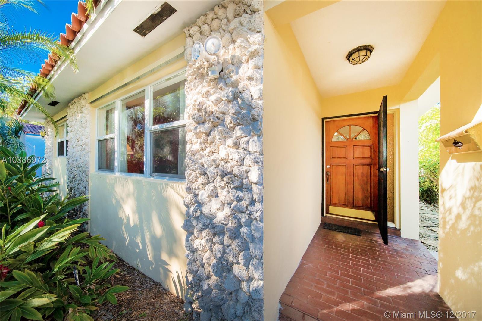 CENTRAL SHORES CORAL CHARMER. If you've been looking to get into Miami Shores, but haven't found the right opportunity, then this hidden gem may be for you. Just steps away from Downtown Miami Shores, this well-maintained home has spacious bedrooms, a large eat-in kitchen, a well-designed layout and a hidden rear one-car garage. The large impact windows bring in lots of natural light and help you save money, and the blend of original details and smart updates offers endless options for those looking to add their own touch. With tropical mid-century exterior coral accents, lush landscaping and a stucco privacy garden wall, you can create your own slice of paradise. Easily walk to downtown shops and eateries, and just a few minutes to the Community Center, Aquatic Center and new Dog Park.