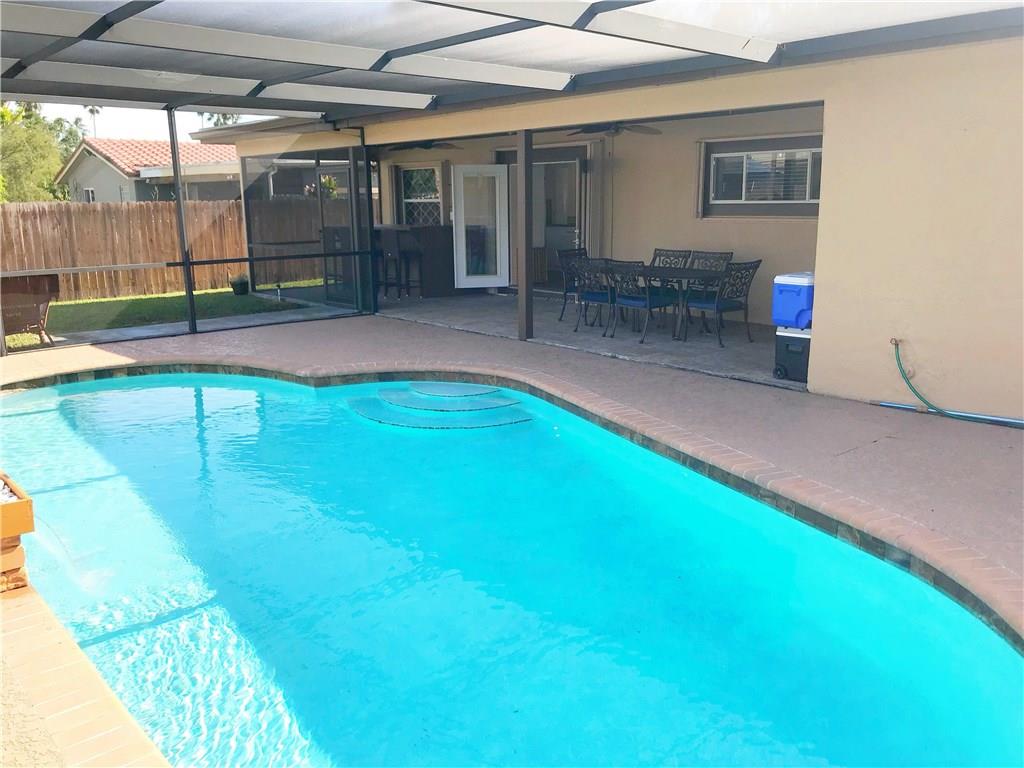 Beautiful 3/2 w fireplace, situated on a culdesac street offering privacy and great neighbors. This charming home has many upgrades! New floors, newer kitchen w/ all Frigidaire appliances, double oven. Tankless H2O heater, water purifier, LED lighting, Hampton Bay fans, New Hurricane Impact Garage, Accordion shutters, built-in BBQ Grill, Outside Bar with entertainment window, pool screen enclosure, 18" of new insulation, Fire Protection, utility room. Very Low taxes and insurance. Must see this beauty!