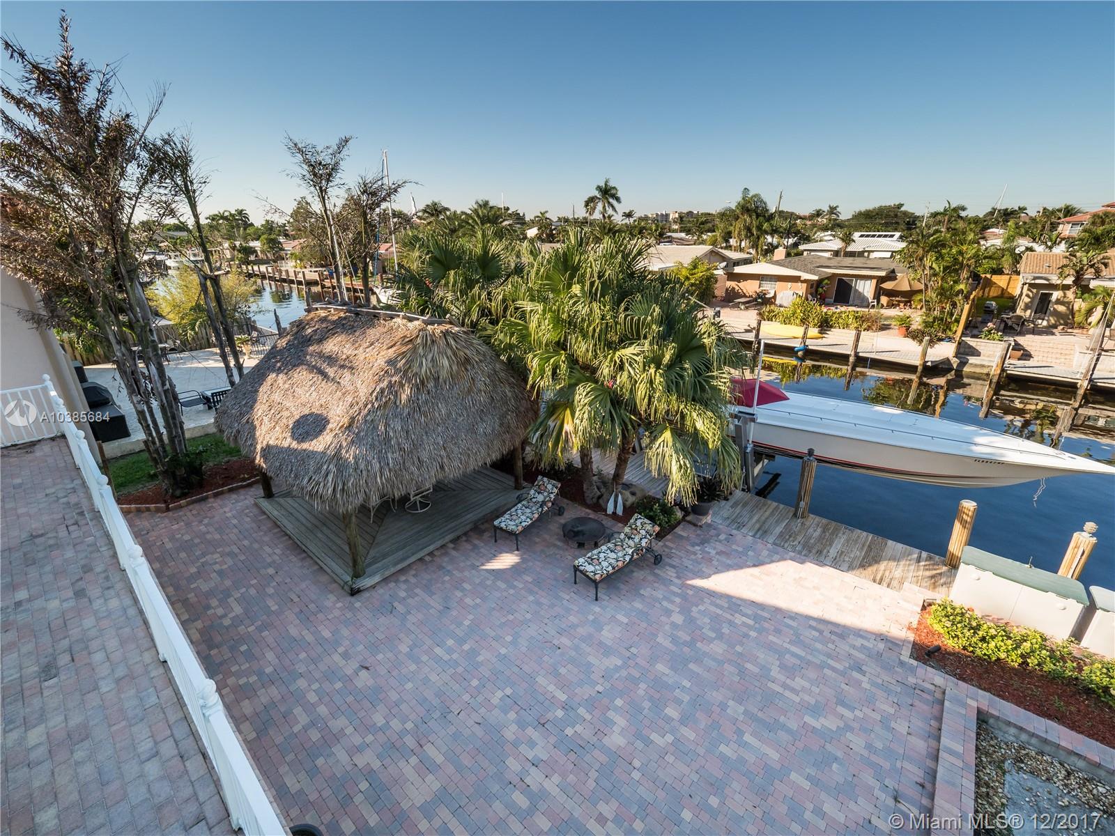 Beautiful Key West Style Home on Deep Water in Exclusive Pompano Isles! This charming residence features, Architectural Style vaulted ceilings with Natural Wood Beams and an abundance of light! The Gourmet kitchen is superbly equipped, with an open style floor plan, Granite counter-tops, Rich Solid Wood Cabinetry, a Double Convection Oven and Sub-zero refrigeration too! Amazing newer Tiki Hut overlooking the waterway is perfect for entertaining.This is a one of a kind waterfront home you will want to see. One sided street for added privacy! Truly a Boaters Paradise! The Dock is fully equipped w/elec.& water. There is an electric Boat lift too! This Charming Oasis is a value added Waterfront Property that is priced right and surely not to last!