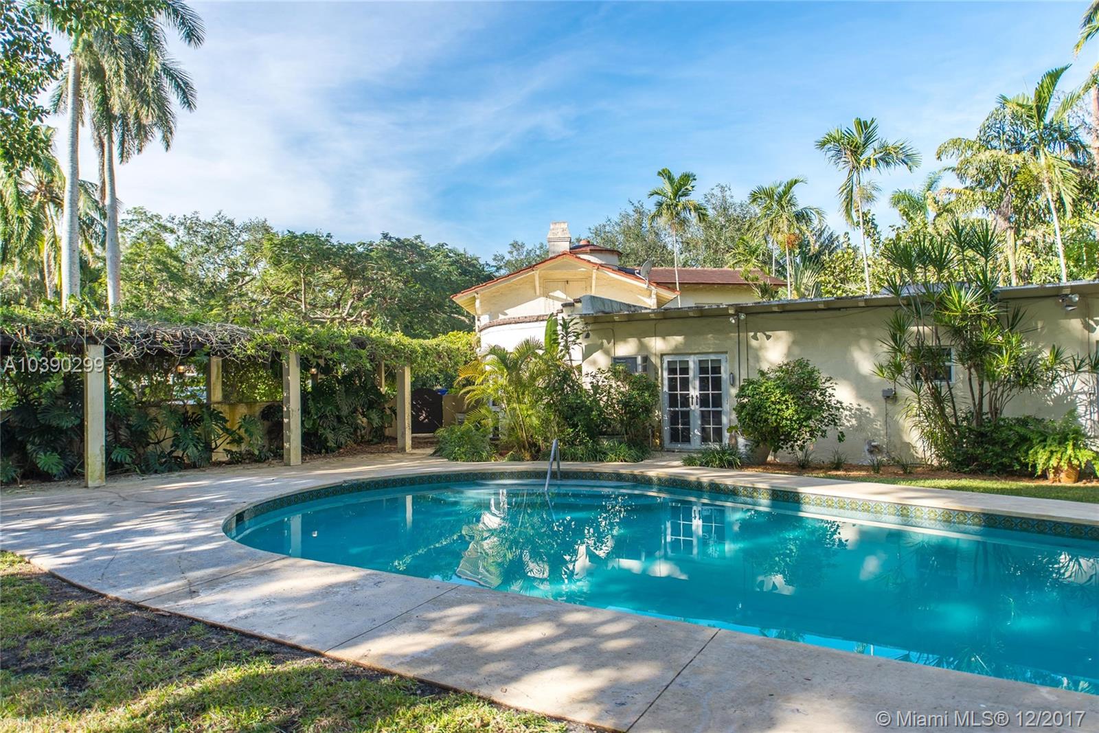 Elegant & rarely available DeGarmo designed estate on Utopia Court, a coveted South Grove cul-de-sac. The home is set within a lush tropical hammock and canopied by mature oaks & exotic palms. (17,700 SF of land / 3 contiguous lots). Classic architectural details (circa 1937) include dramatic vaulted wood beamed ceilings, original stone fireplace & 5 foot high sculptured wood panels that encircle the formal dining room. Grand formal living room with unique interior balcony, originally used as a library. French doors throughout overlook the stunning grounds with vine covered terraces, brick courtyard and tranquil pool. Close to the Grove village center’s galleries, boutiques, cafes and bayfront parks & marinas. Minutes to downtown, MIA, Coral Gables, Key Biscayne and the Beaches.