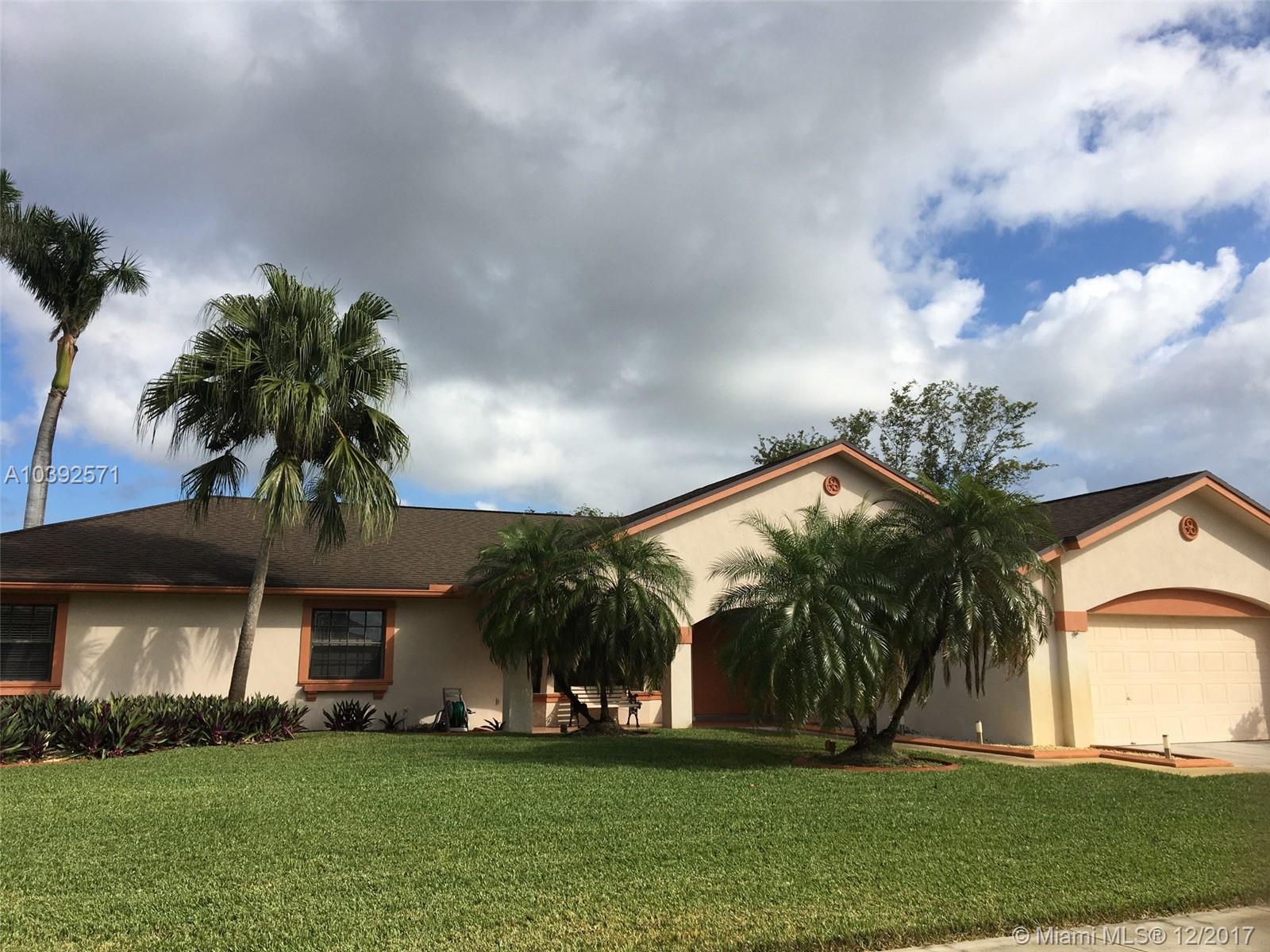 Estate size home! formal living and dining room. French doors lead to the office-den and wood floors were installed for added comfort. Open concept in the family room, breakfast area and kitchen. the kitchen has granite counter tops, stainless steel appliances and an Island with electricity and loads of storage space. 4 huge bedrooms and 4 walk in closets with a split floor plan. Master has a Garden tub, separate tiled shower and double sinks. Second bath is a cabana with double sinks. Beautiful views of the pool from most rooms in the house. The back yard is a beautiful extension of the home, where you will enjoy great entertaining. The oversized pool, lush landscaping and covered patio with ceiling fans will complete your tropical oasis. You will not be disappointed