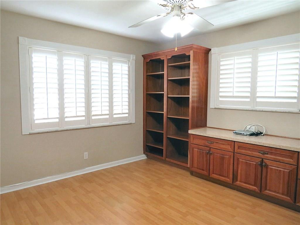 Light wood floors throughout entry, formal dining, kitchen & family room.Updated kitchen, wood cabinets, upgraded stainless steel appliances, eat in breakfast area, large pantry. Full bathroom & walk in closet off the family room.Master bedroom,walk in closet.2nd bedroom,walk in closet.4th bedrm in garage, can be restored to 2 car garage.Plantation and hurricane shutters. Screened pavered patio & deck around open pool. Fenced back yard, oasis of tranquility, lush landscaping.Tile roof, 2007.