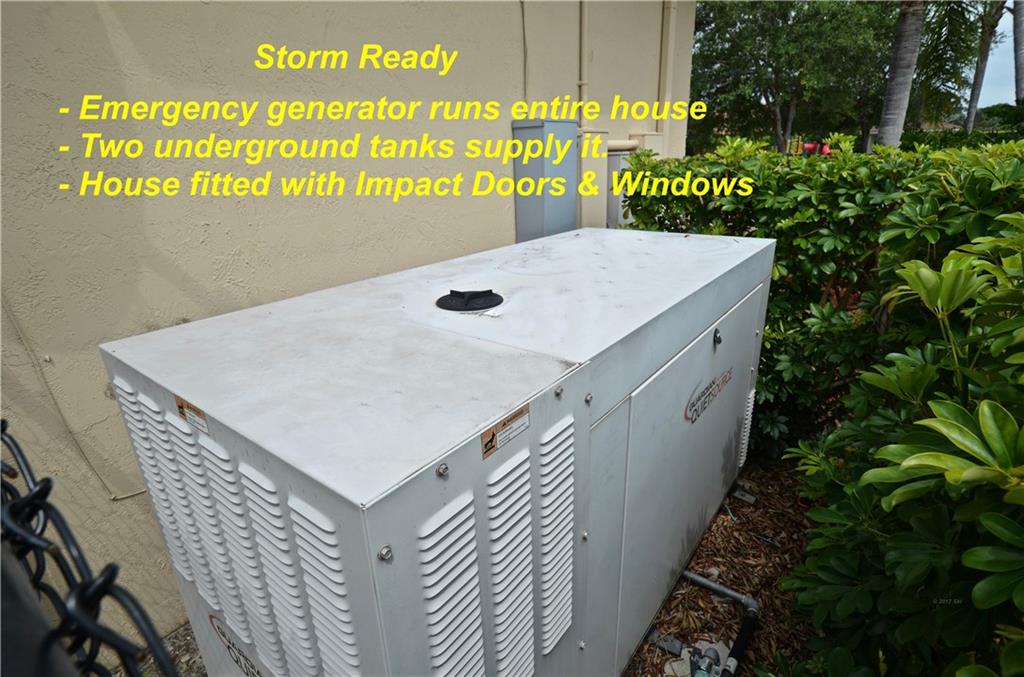 7 bedroom, guest house/suite due to the 1,300 sq.ft. addition which hosts 3 bedrooms one of which could be a second Master Suite with private entrance. Features: Home theater, Kitchen granite counters & wood cabinets. Nearly 50 ft. swimming pool. Point lake lot wraps 400 ft of water. Storm ready: Impact windows/doors, emergency generator/ two underground tanks which will run home for nearly 1 month!. Located at cul-de-sac turnout across from community park. Very private and spacious See online floor plan