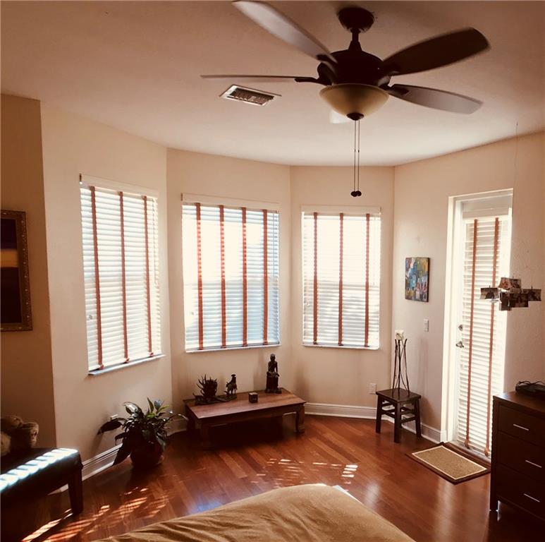 Exquisite townhome, Fabulous for entertaining. Modern kitchen and granite breakfast bar open to great room, Entire second floor and winding staircase professionally upgraded to Santos Mahogany hardwood with beautiful wrought iron railings. His & Her's walk-in closets in luxurious master suite with spacious sitting area, spa-like bath and secret martini balcony overlooking Zen backyard with loggia, tranquil fountain and trouble free artificial turf. Half-bath on 1st floor. All Impact Windows & Doors.