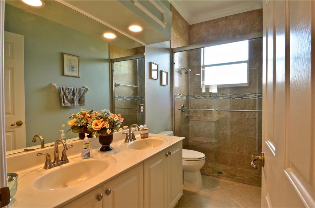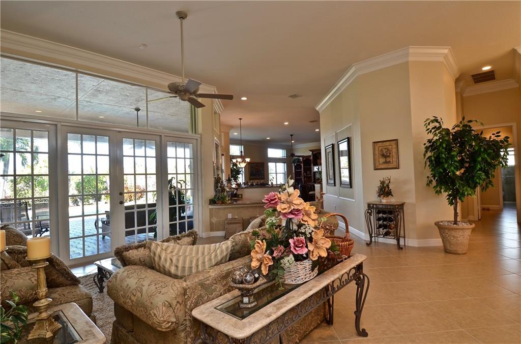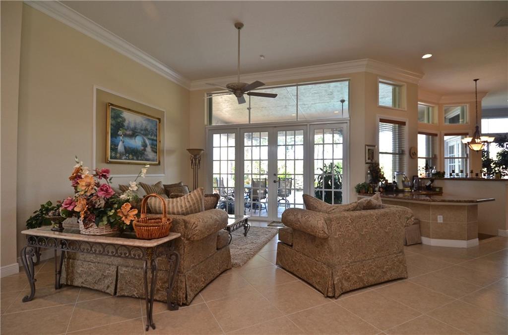 This is the Residence 3 model in the guard gated community of Riverstone - The home is immaculate! - many upgrades which include all new GE Profile stainless steel appliances in April 2017 - Refrigerator/double wall ovens/microwave/dishwasher. Bathrooms have also been updated, including new Kohler and frameless shower doors. - The home sits on a lushly landscaped lakefront lot. 40' pool with stone waterfall. Storm ready accordion shutters, french doors, crown molding and more.