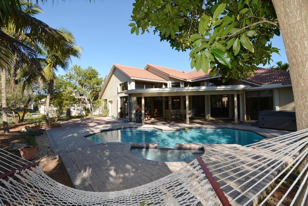 Executive home on spacious lot in one of Weston's premier neighborhoods. Tile throughout living area with laminate in bedrooms. Updated kitchen with granite counters, top of the line refrigerator replaced in 2017. Tri split floor plan, roof replaced in 2010, custom closets, dual AC, crown molding, pull down stairs to attic, shutters both flat & accordion. Beautiful fenced back yard with large overhang for true Florida living. Community tot lot. 24 hr guard gated community. Top rated schools.
