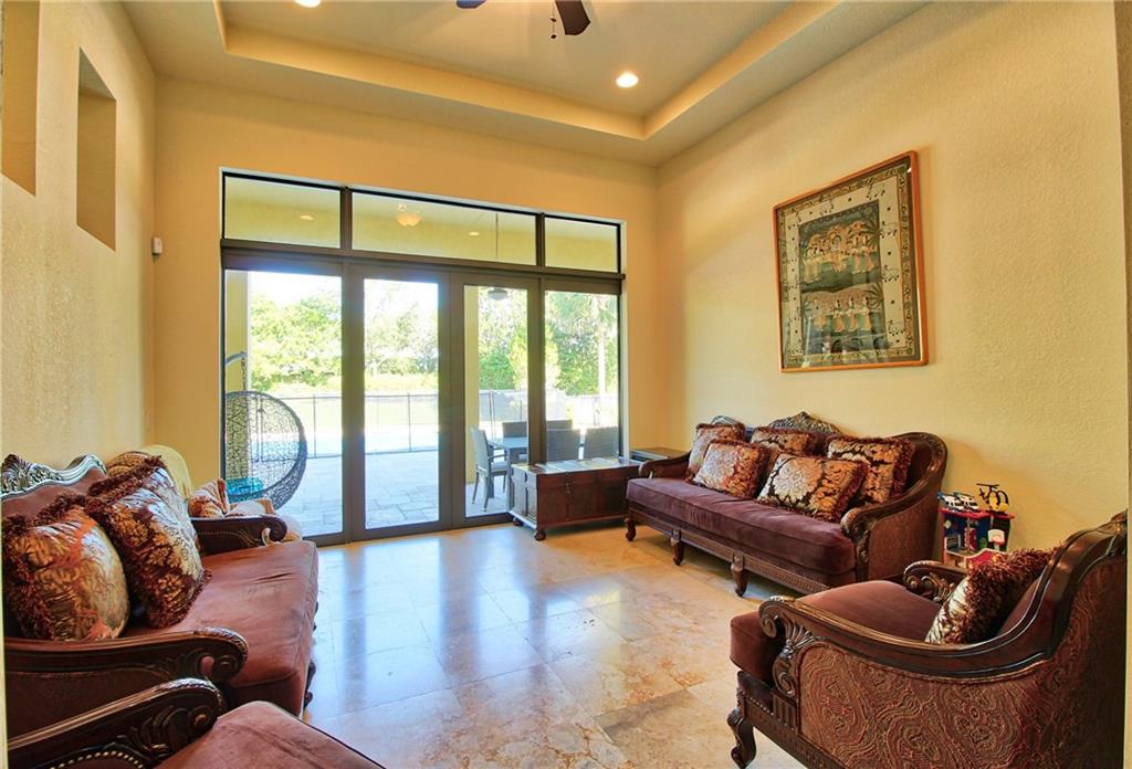 DO NOT MISS THIS OPPORTUNITY IN PGCC!! Priced to SELL, this one story Carabella offers 4 bedrooms plus den with NEW POOL! Full impact glass, full concrete construction, buried propane tank w/ gas cooktop. Great entertainers kitchen. Large master bedroom features a sitting room and large bathroom with private courtyard access! Wall between kitchen and living area is non load bearing and has been removed in other models to offer an open feel, picture included for example and is a negotiable item.