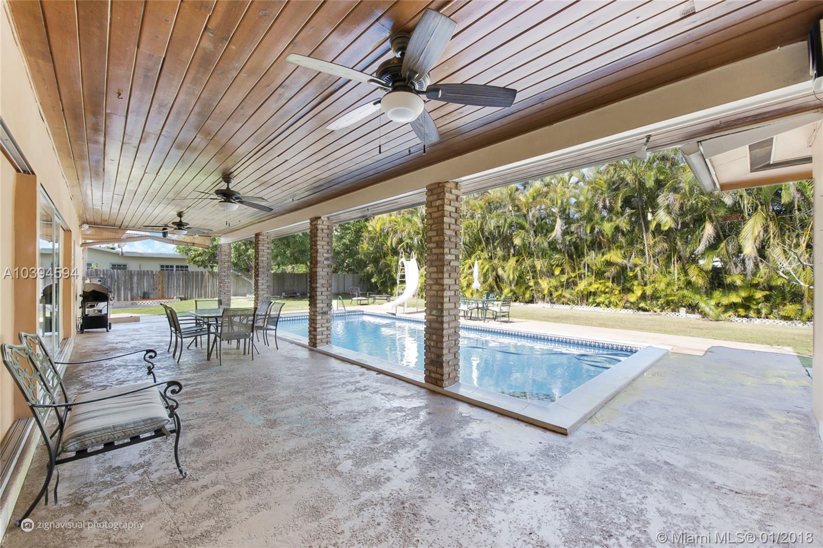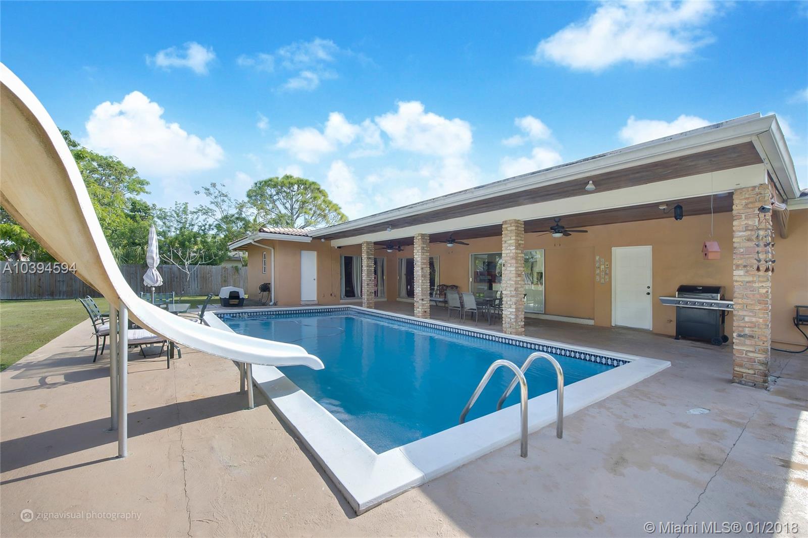 Enjoy Pinecrest living with this pool home boasting an expansive lot in highly desirable school district. Set within walking distance to Palmetto Elementary and Middle School, this home features a two-car garage, updated bathrooms, newer A/C, spacious master bedroom with pool view/access, walk-in closet and convenient cabana bath. Living room offers pool view and access to covered terrace for entertaining, adjacent to cozy kitchen featuring stainless steel appliances and sliding glass doors completely opening up to pool terrace, ideal for year-round indoor/outdoor gatherings. Ample lot size offers opportunity to expand and room to park a boat/trailer.
