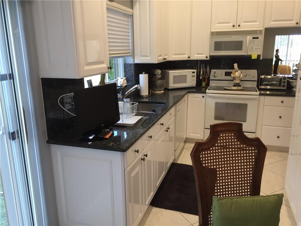 3 BEDROOM 2 BATH EXTENSIVELY REMODELED. 22" ON DIAGONAL NEUTRAL ITALIAN TILE THROUGHOUT. KITCHEN REMODELED WITH GRANITE COUNTERS & CUSTOM CABINETRY. EXTRA CABINETS AS WELL AS DOUBLE PANTRY.NEWER APPLIANCES. BOTH BATHROOMS ARE REMODELED WITH GRANITE COUNTERS AND CUSTOM CABINETRY.BREAKFAST AREA IN KITCHEN. EXPENSIVE COMPOSITION GARAGE FLOOR. HUGE OVERSIZED COMPLETELY COVERED SCREENED PATIO. ROOF REPLACED IN 2006. AC IN 2016. HW IN 2015. GATED COMMUNITY WITH CLUBHOUSE,2 POOLS & TENNIS.