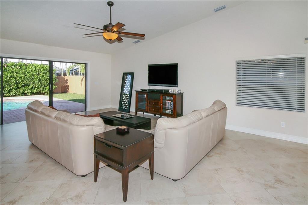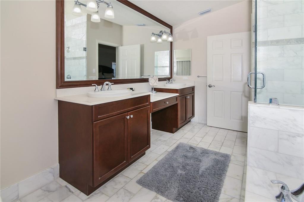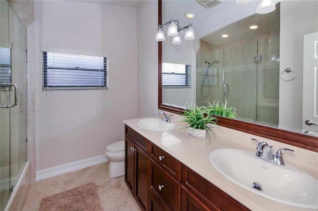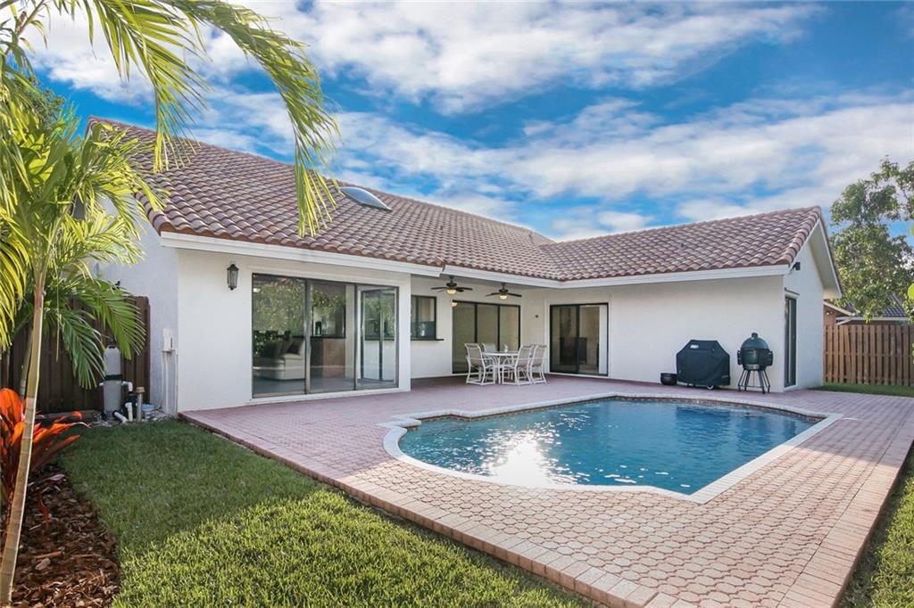 Gorgeous Estancia model pool home in Jacaranda Lakes! Interior features vaulted ceilings, open layout with tons of natural light. Updated kitchen, wood cabinetry, granite countertop & S/S appliances. Porcelain tile flooring laid diagonally in main living areas. Remodeled bathrooms with Kohler plumbing fixtures. M/Bth with Carrera marble, double vanity, framed mirror,frameless shower enclosure & jacuzzi tub. Roof 2009.AC units 2009. Impact rated garage door and shutters.Paver pool deck & circular driveway.