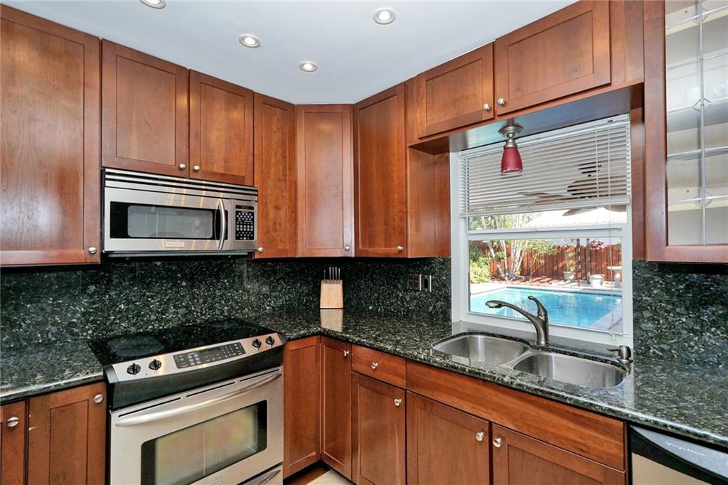 Beautifully updated 3 bedroom 3 bath home nestled on a quiet street. Updates include NEW roof 2017, impact windows and doors, A/C 2 years old, and tankless hot water tank 2 years old. Bright and open floorplan, fantastic kitchen with granite countertops and stainless steel appliances, updated bathrooms, spacious bedrooms, large laundry room, tranquil backyard with covered patio, pool and built-in stainless steel gas grill and more! This home is a must see!