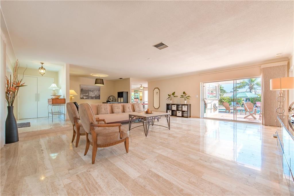 THE LANDINGS WATERFRONT ESTATE | Nestled on quiet street in a desirably tranquil cul-de-sac with 85' dock (no fixed bridges), this home comes complete with spacious living room and den plus 3 expansive bedrooms, incredibly bright kitchen surrounded with windows, a two car garage and a separate laundry. Extra deep lot offers extraordinary outdoor living while being conveniently close to the beach, shopping, schools, dining & entertainment. Recently updated pool, seawall & dock, pool heater, & A/C.
