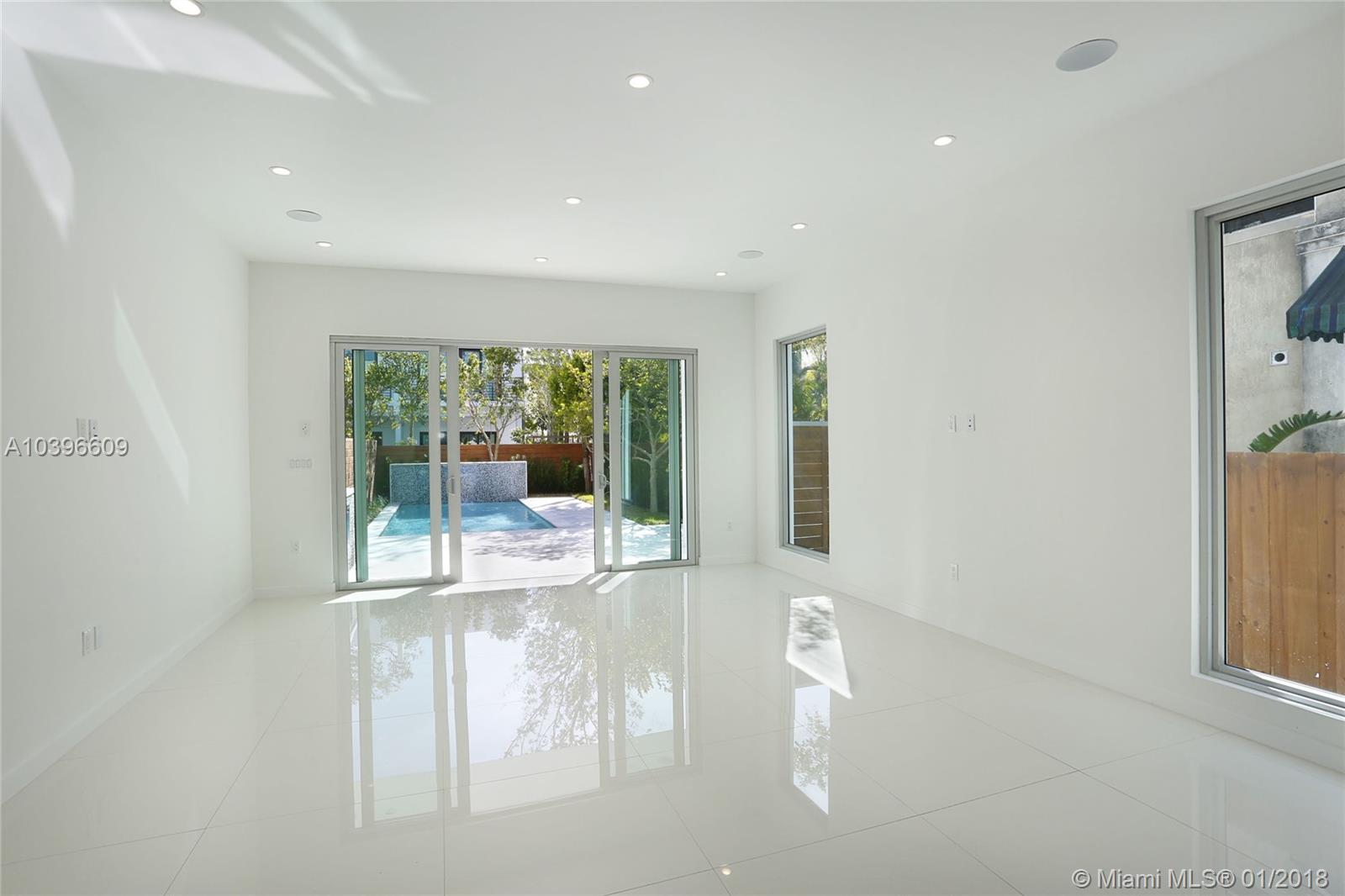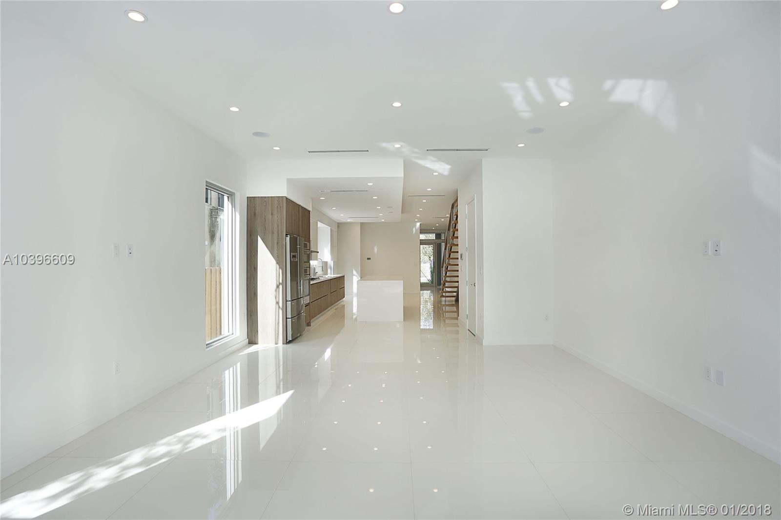 Brand new, contemporary town home with high end finishes. Four light filled bedrooms, three and a half baths. High ceilings on both floors. Porcelain wood tile throughout. Solid construction with concrete roof and concrete decking for the second floor. Finished floors in the garage and natural light through window. Top of the line European style cabinets. Bosch appliances. Over 30 feet of kitchen cabinets and counter. Gas cook top, water heater and dryer. LED lighting. Built in sound system. Expansive back yard with 10X20 pool that has a water feature. Two master bedrooms on the second floor, set up as split floor plan. Two more bedrooms with Jack & Jill bath. Easy walk to Downtown Coconut Grove, local restaurants, parks, shopping. Located at high elevation, not a flood zone!