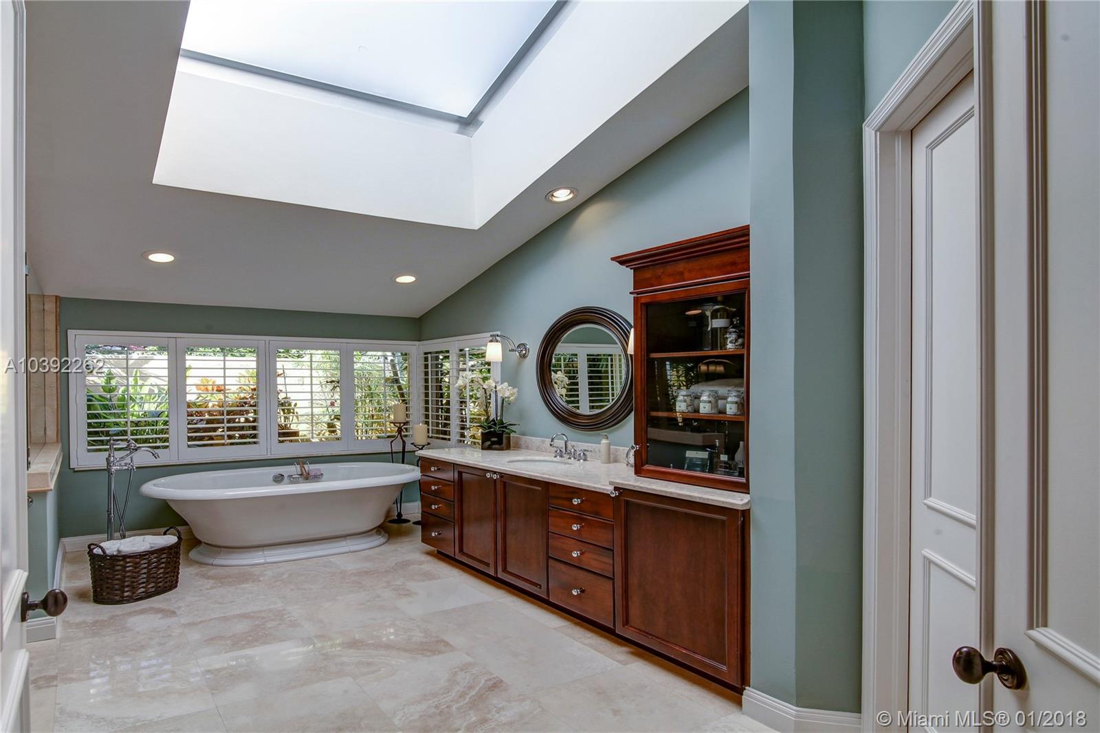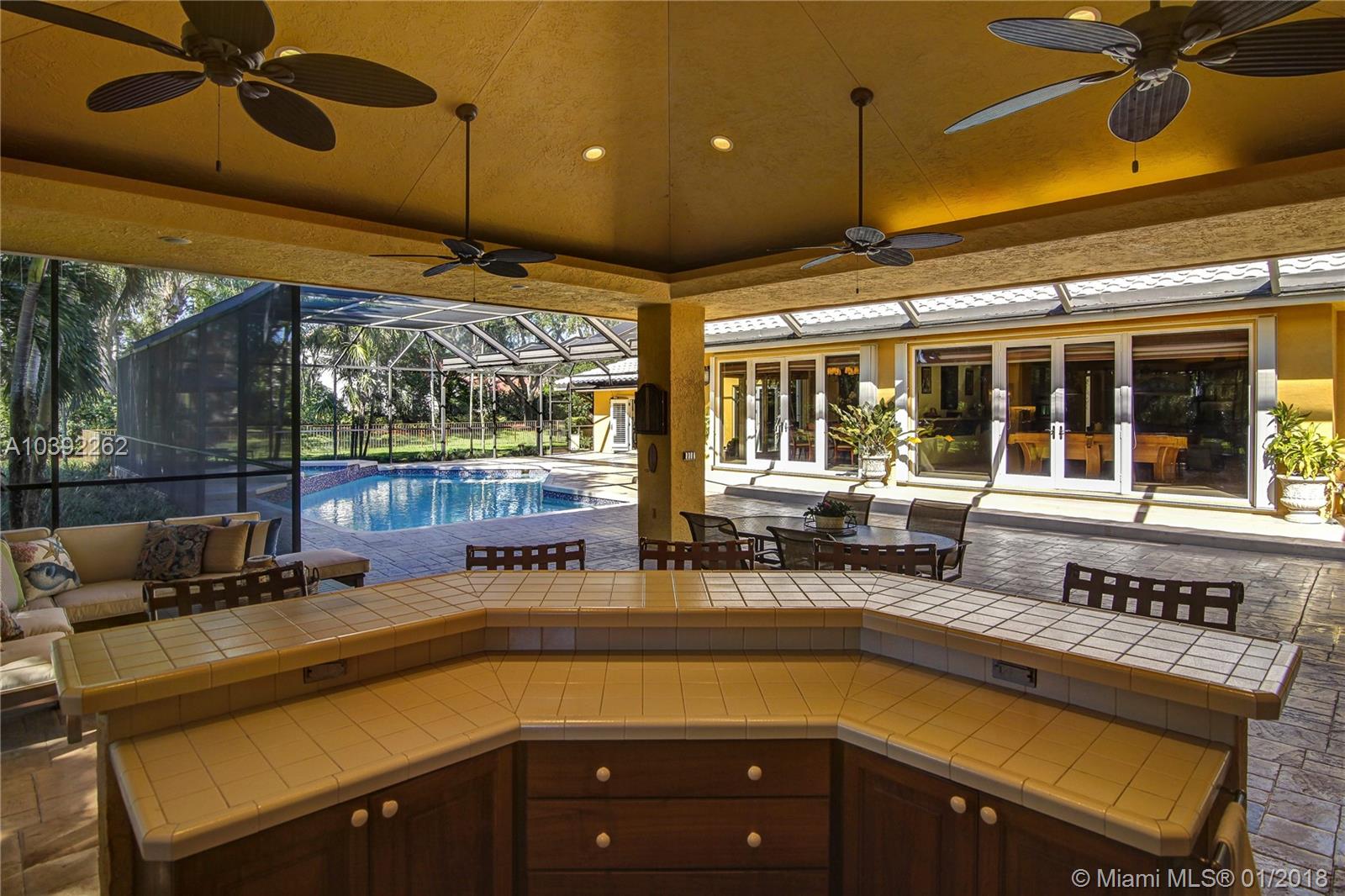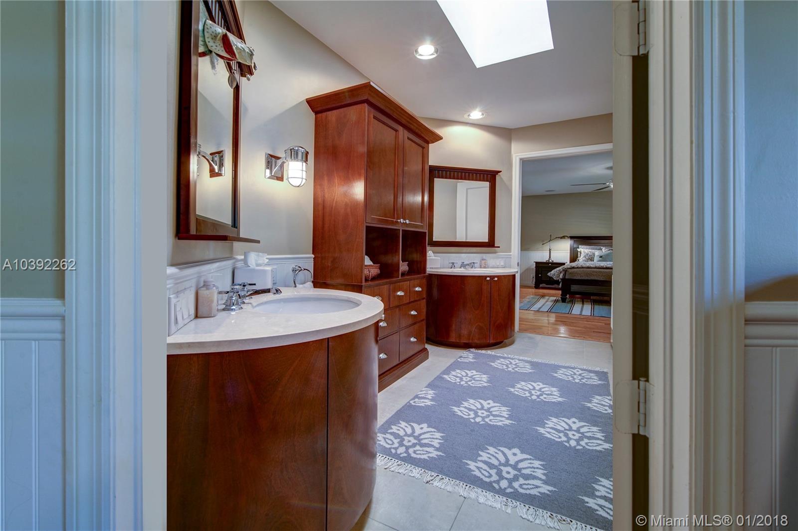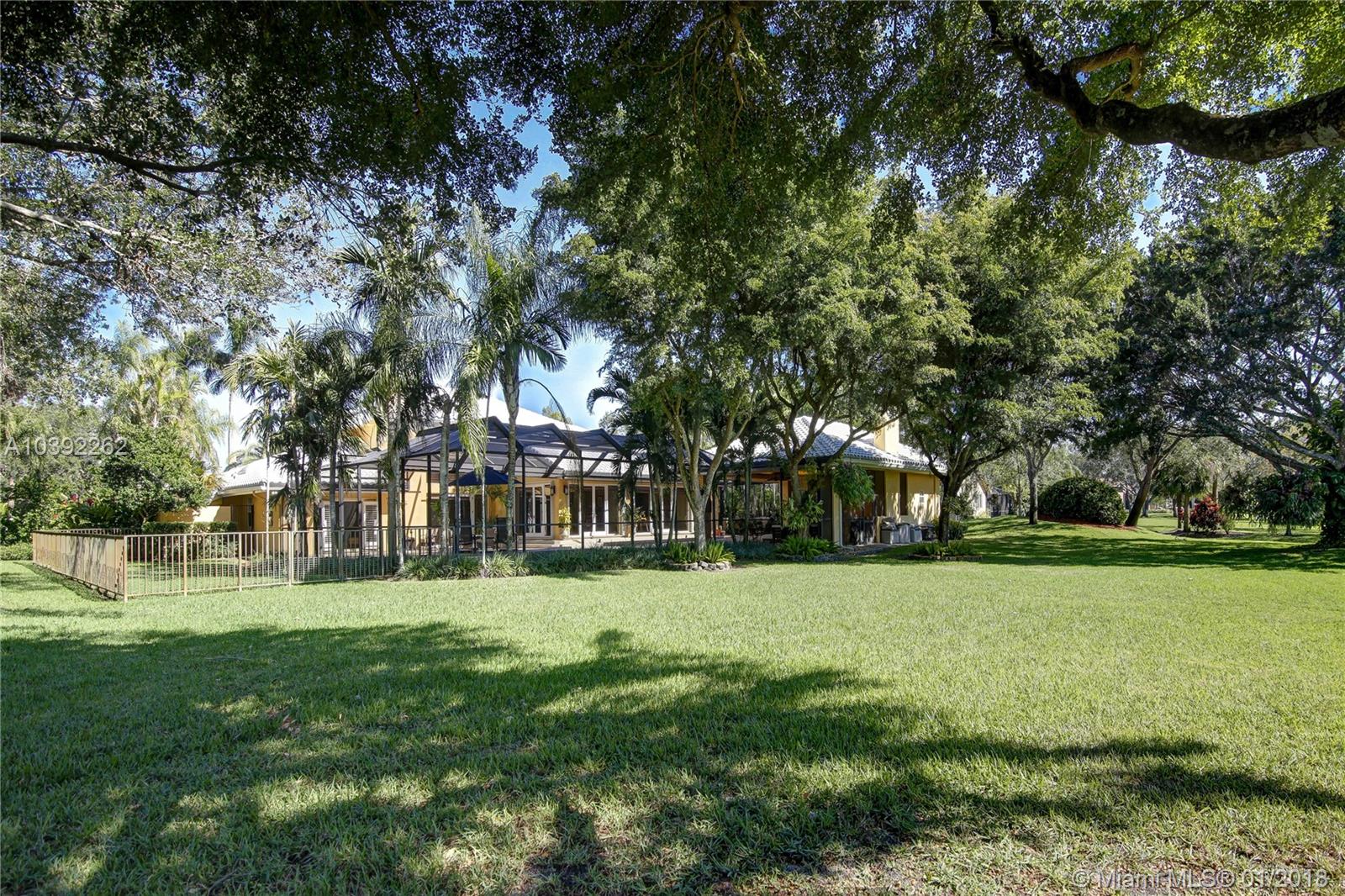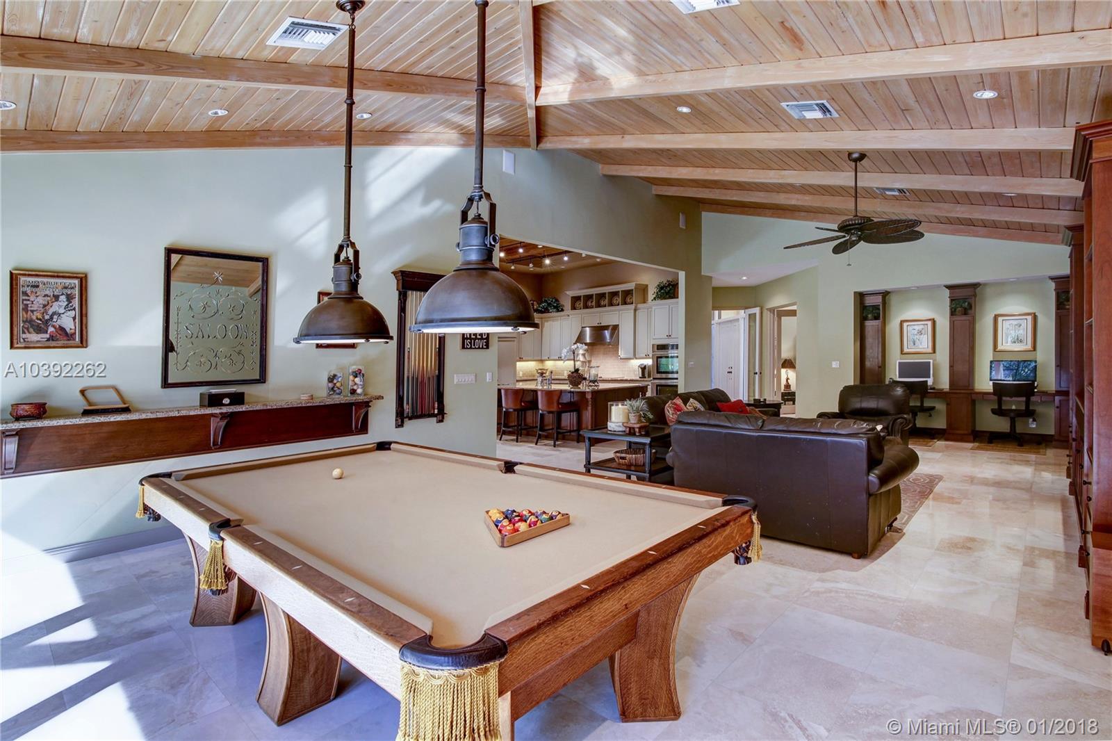 Luxury custom built home set back on a quaint cul de sac street. Enter this sprawling ranch via your circular drive with lush mature landscaping. Grand wood door welcomes you to this special entertainers delight home. Total Renovation in 2005. Enjoy gleaming marble floors with wood in all bedrooms. Step into your formal living room complete with fireplace, beamed ceiling and french doors to back yard oasis. Gourmet kitchen with oversized 10x5 center island, soaring ceilings, double ovens with sunny breakfast nook with windows overlooking pool. Custom office with tasteful built ins. Screened heated pool/spa with expansive deck including full summer kitchen, fountains, electric awning,lush tropical landscaping with lighting and Spacious guest house with full bath.