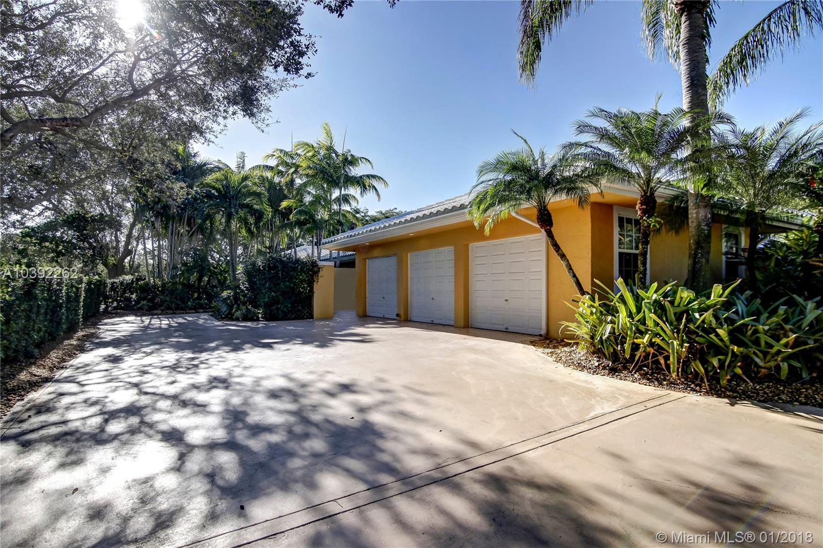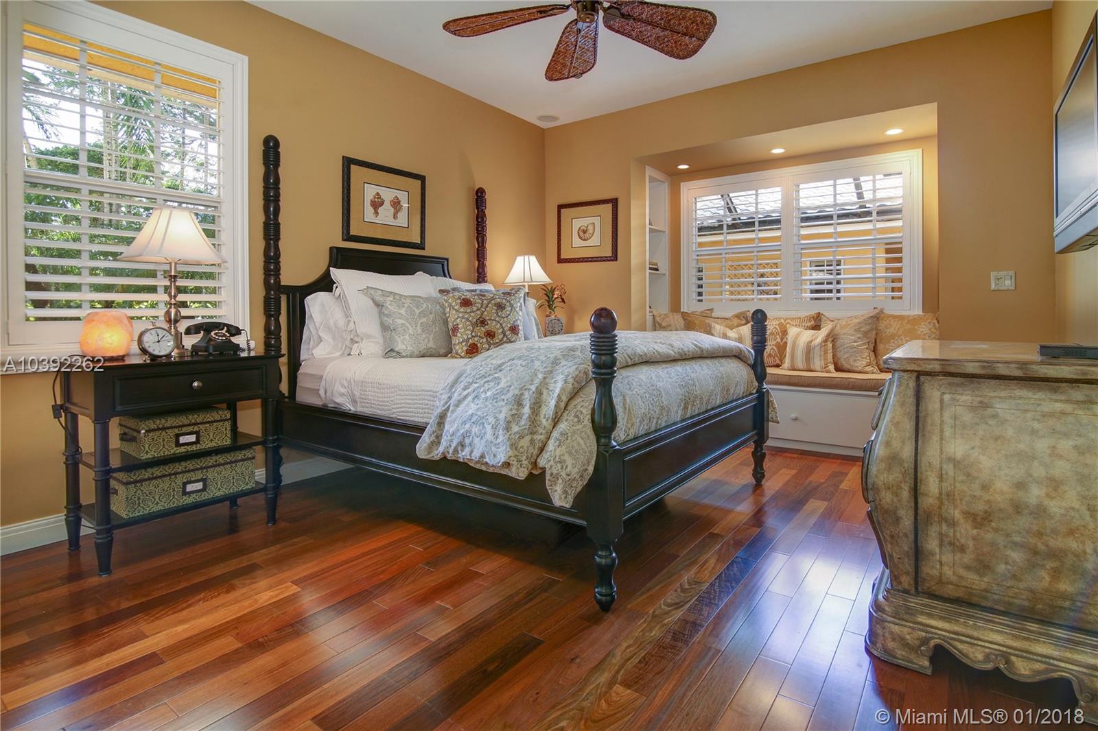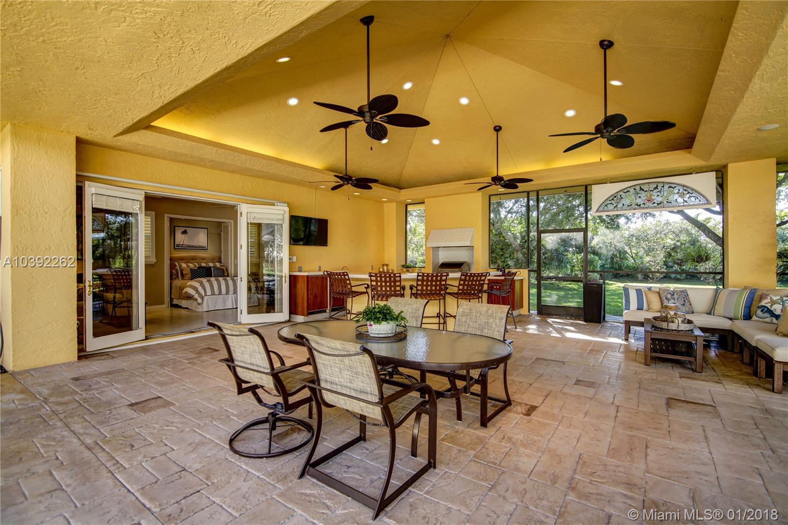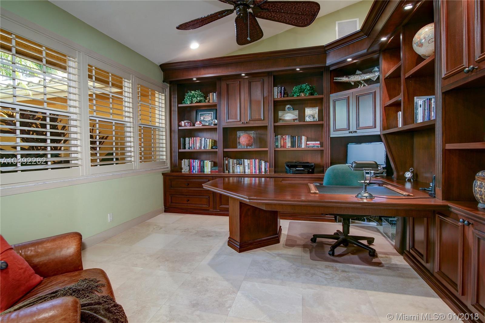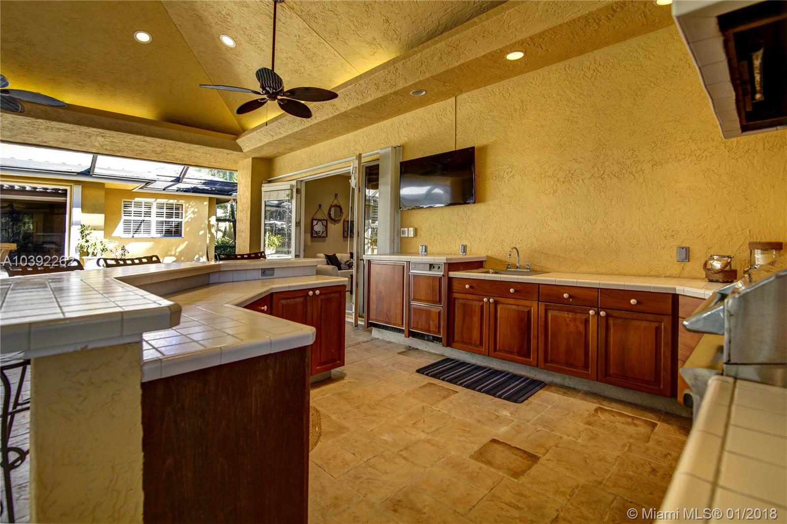 Luxury custom built home set back on a quaint cul de sac street. Enter this sprawling ranch via your circular drive with lush mature landscaping. Grand wood door welcomes you to this special entertainers delight home. Total Renovation in 2005. Enjoy gleaming marble floors with wood in all bedrooms. Step into your formal living room complete with fireplace, beamed ceiling and french doors to back yard oasis. Gourmet kitchen with oversized 10x5 center island, soaring ceilings, double ovens with sunny breakfast nook with windows overlooking pool. Custom office with tasteful built ins. Screened heated pool/spa with expansive deck including full summer kitchen, fountains, electric awning,lush tropical landscaping with lighting and Spacious guest house with full bath.