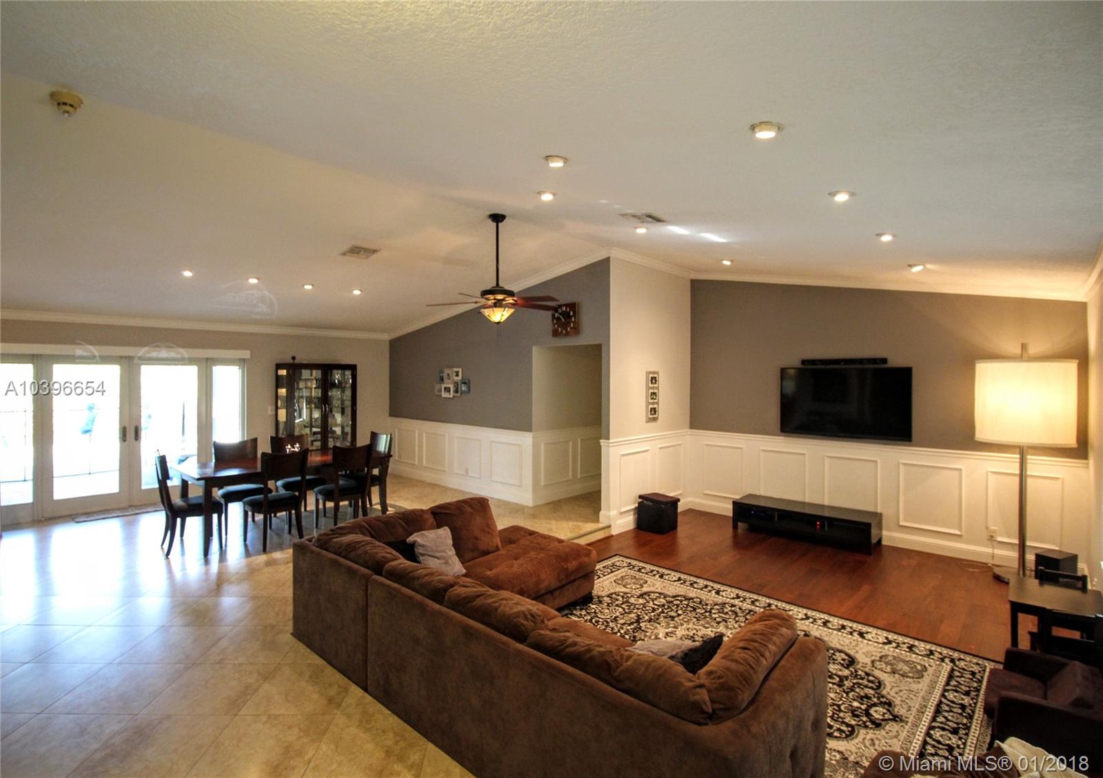 The home that has it all. Fully renovated home with 4 bed/2 bath + 5th room/Den/Office. Fully hurricane protected (impact windows, doors & garage). Open concept from the living room to dining room flowing into the kitchen & setup perfectly for entertaining family and friends. The large back screened patio is perfect for entertaining rain or shine with large roof covering and plenty of room for seating. Newly installed pool heater, newly installed sprinkler pump system, newer water heater, crown molding throughout home for that extra interior finish. Open kitchen w/island and hooded vent system, which is chefs paradise. This home has it all with no neighbors behind you. Walking distance to schools & park down the street. Close to shopping,restaurants, & highways for easy commute.